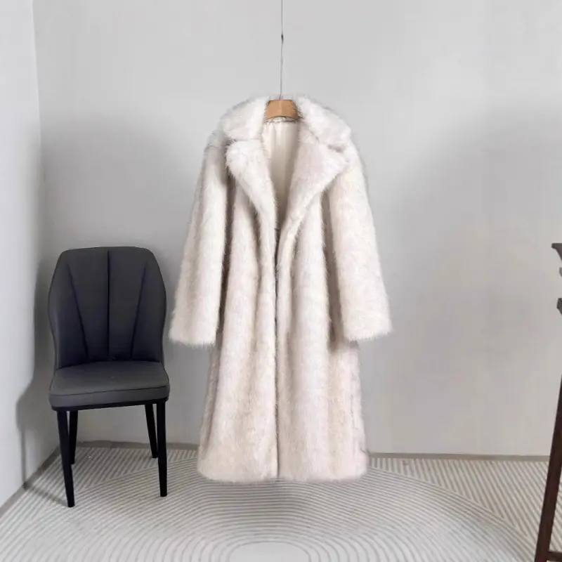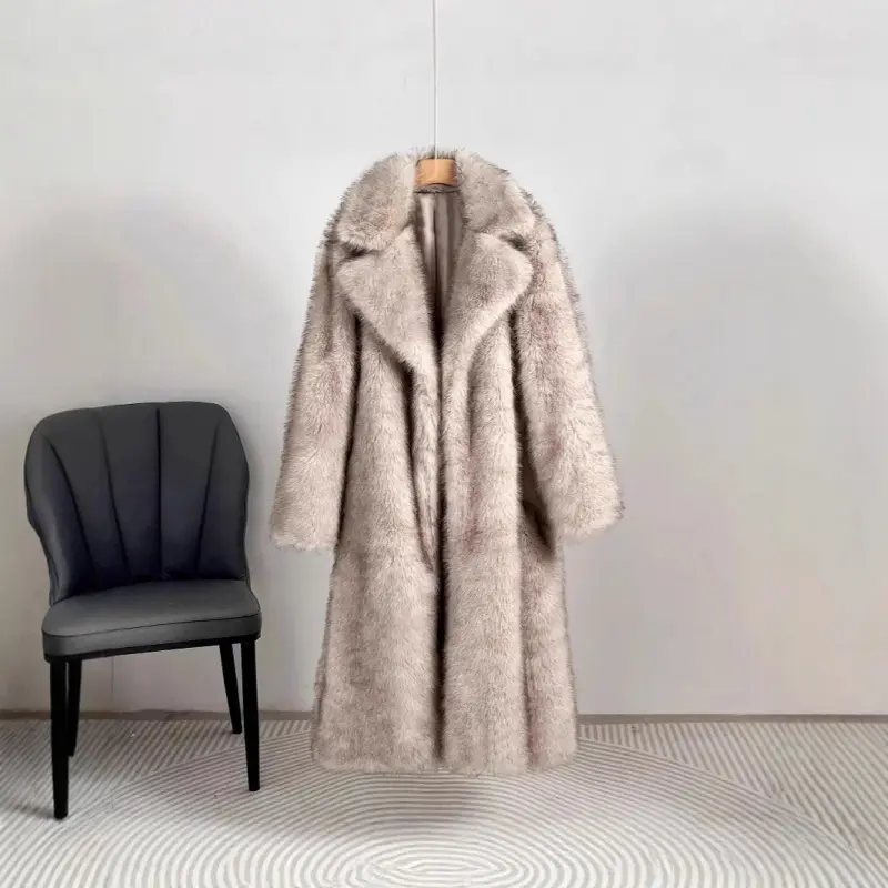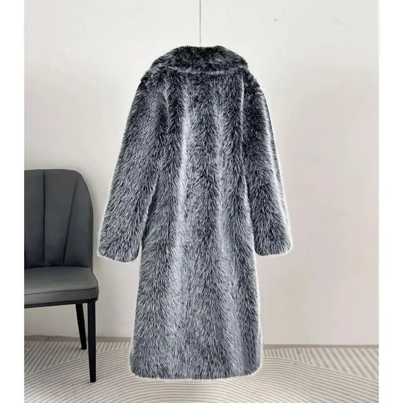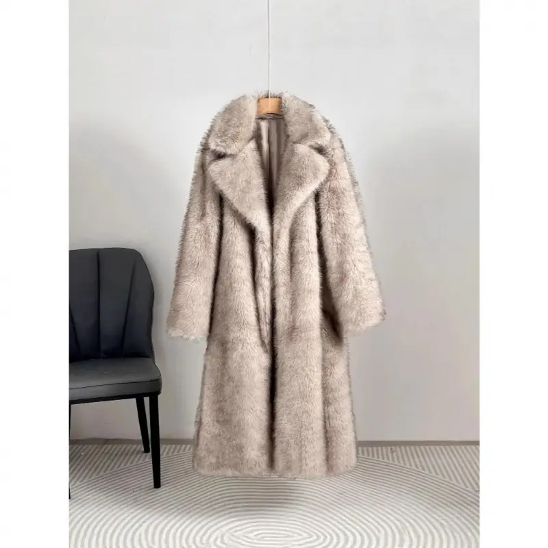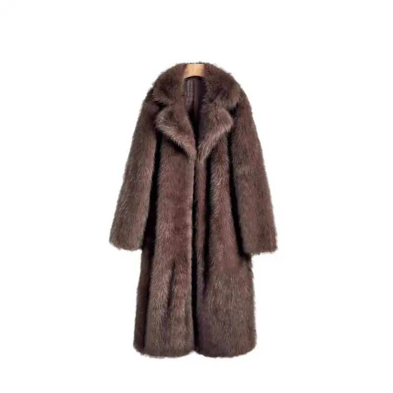 5. European And American Style Autumn Winter Women's Long Faux Fur Coat With Blazer Collar Faux Fur Jacket Outerwear Womenswear1123