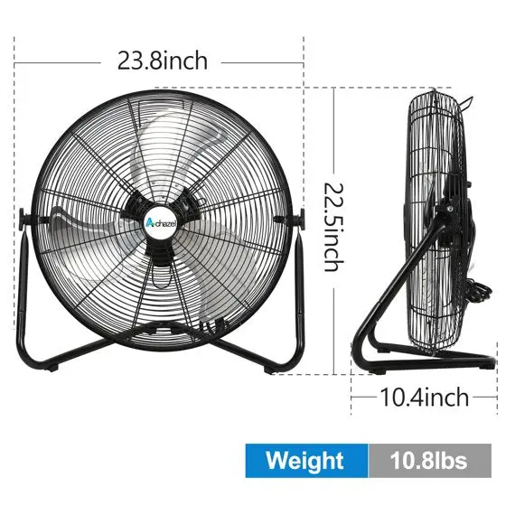Achazel 20" High Velocity Floor Fan 3-Speed 5200 CFM Industrial Shop Fan Heavy Duty Metal with Wall Mount System for Garage Workshop Commercial Use