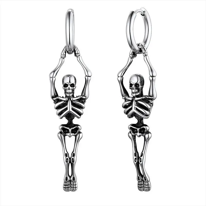 Exaggerated Skeleton Bone Earrings Vintage Gothic Style Drop Earrings Cool Streetwear Accessories