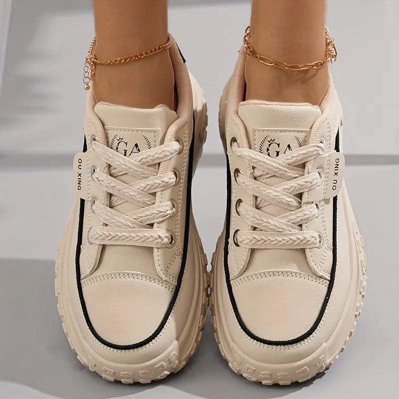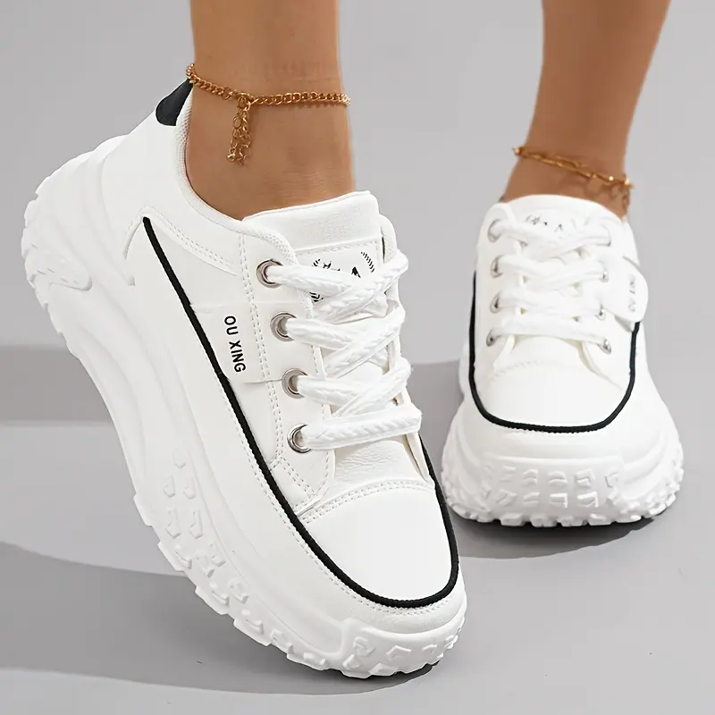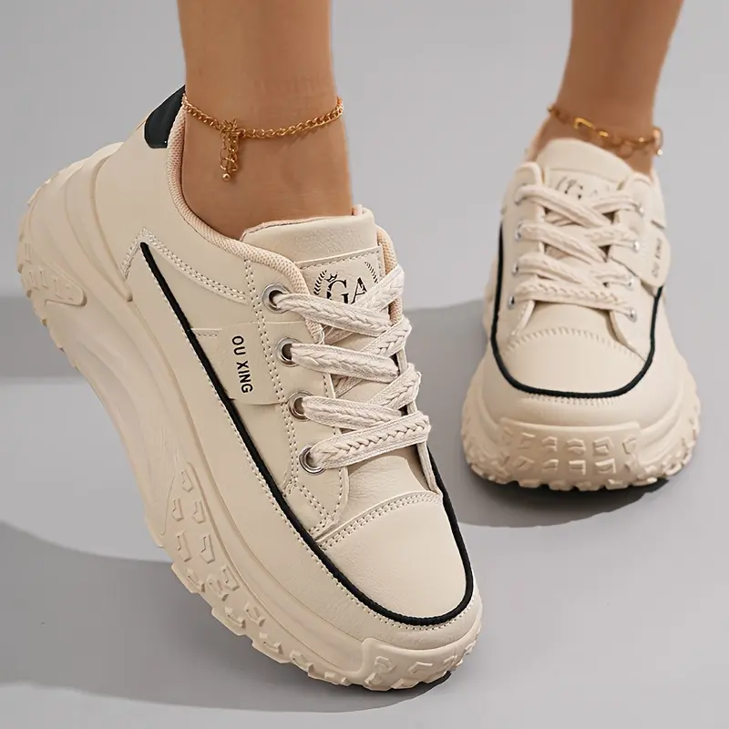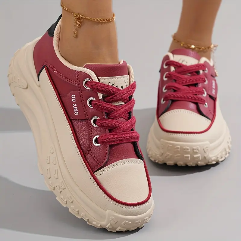 Women's Chunky Platform Sneakers, Fashion Thick Sole Dad Shoes, Versatile Casual Sports Shoes For Students, Breathable Lace-Up Trainers