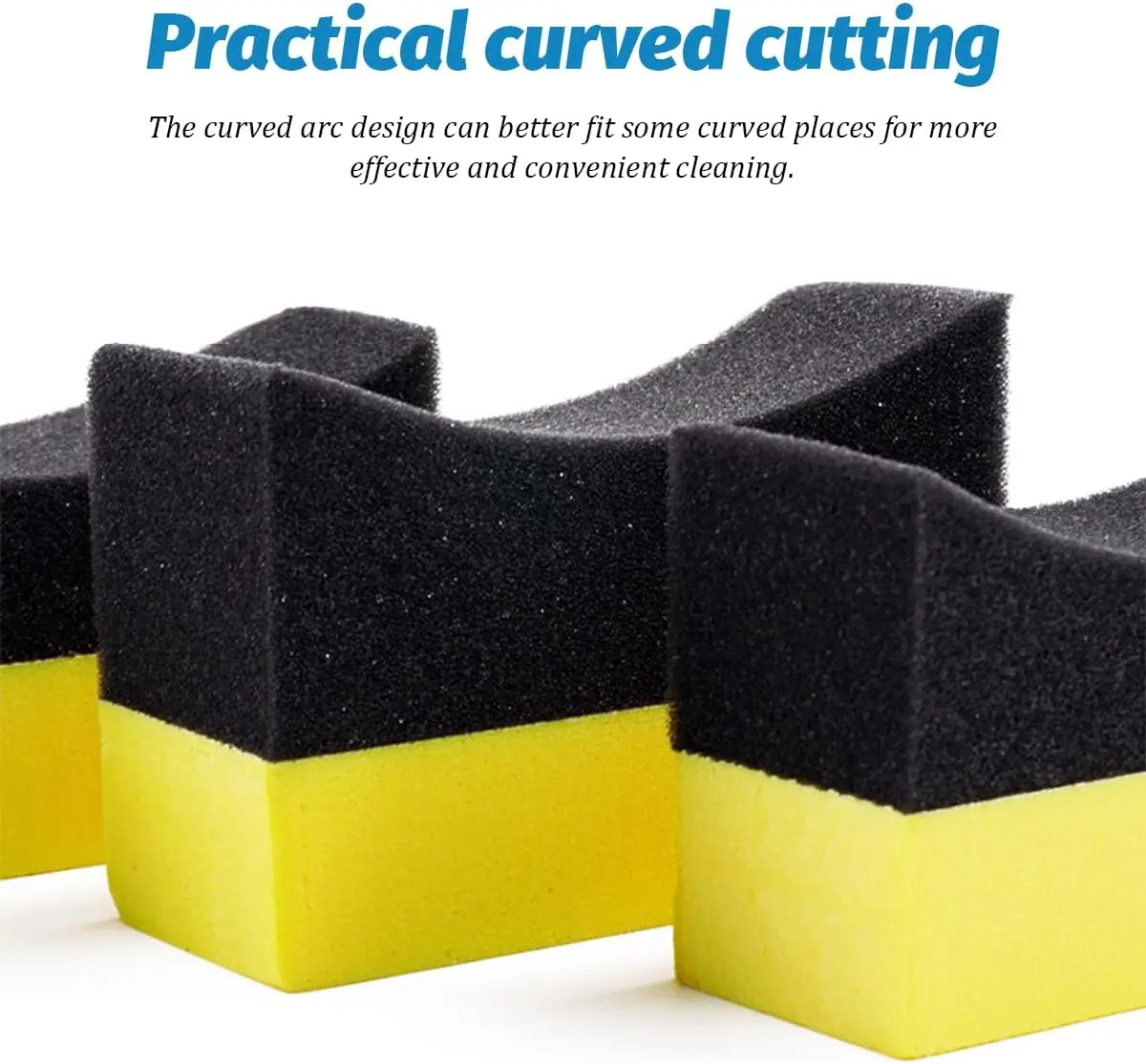 Practical Function: Our car tire applicator dressing shine sponge features a crescent-shaped design that closely conforms to the tire's curved surface, providing stronger grip and significantly reducing slippage, making the process more effortless and stable. Additionally, the sponge's angled edges can easily reach into the narrow gaps between the tire and wheel rim, ensuring thorough cleaning with no blind spots, keeping the tires looking bright and new for longer.