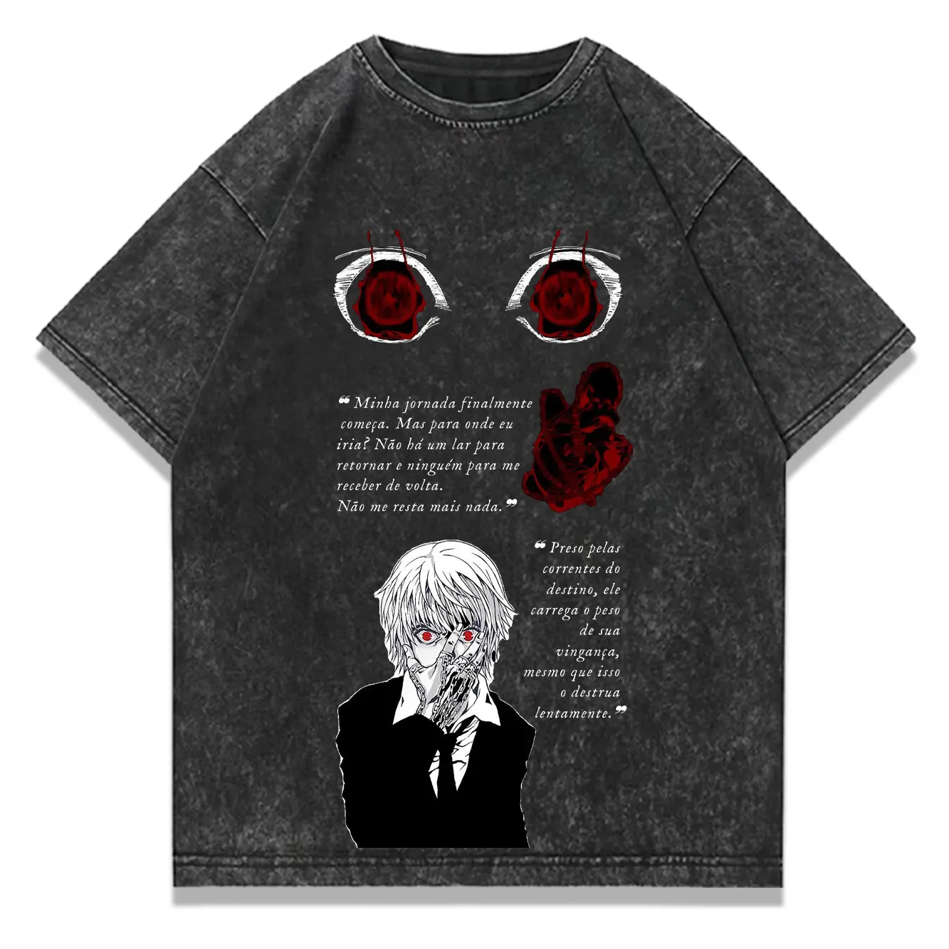 5. Vintage Distinned Hunter X Hunter T-Shirt, Oversized Kurapika Blood Eyes Graphic Tee, Retro Anime Streetwear