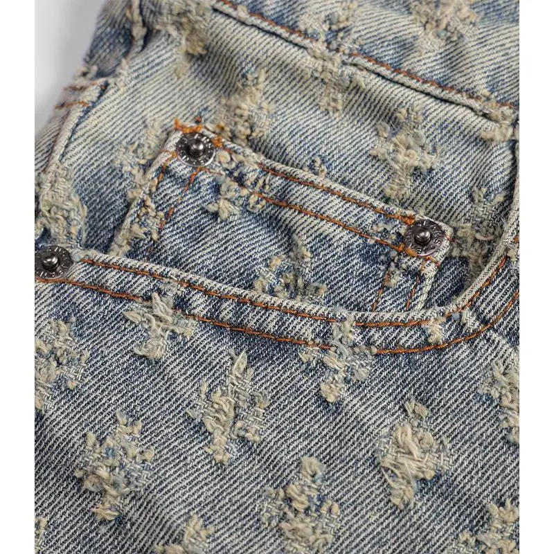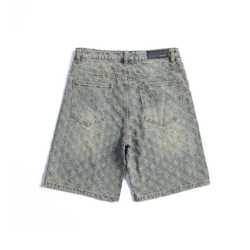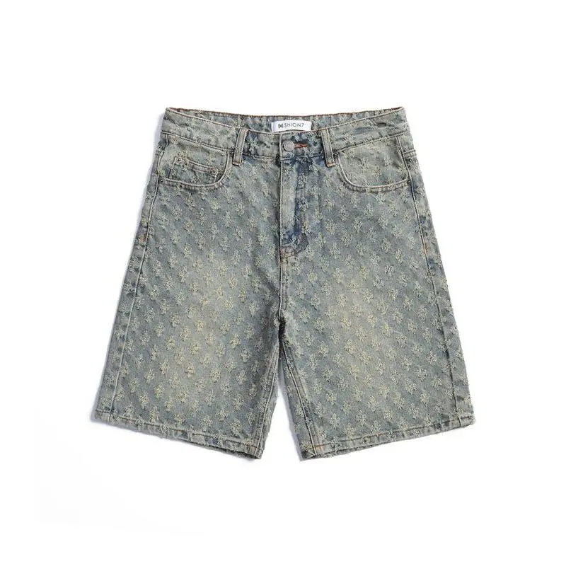 Men'sDenimShorts,RelaxedFitDistressedJeanShortPantsforMen,BreathableCasualStreetwearShorts,CraftedKneeLengthShortPantsLooseOversizeBaggyTrouserWomenswearBottom