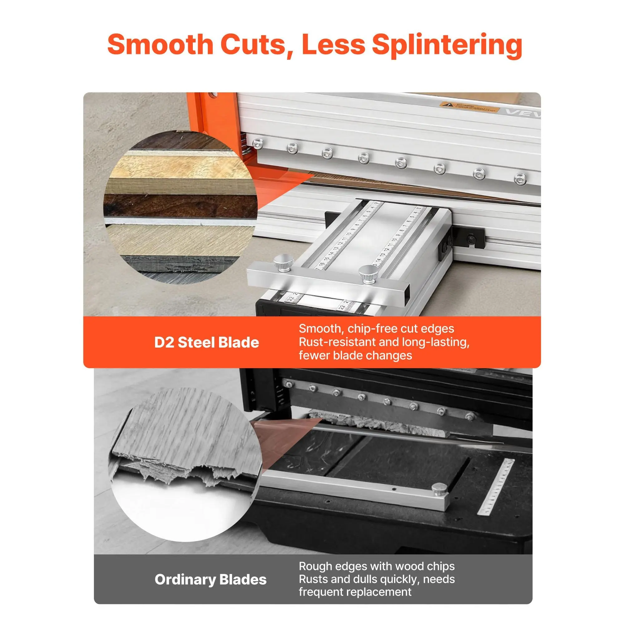 Effortless Cutting: This vinyl floor cutter uses an upgraded aluminum-alloy lever that requires less force than traditional metal designs.By adjusting the bearing position, you can find the ideal pivot point for smoother, easier cuts12 mm Max Cutting Thickness: This laminate floor cutter supports a max cutting length of 12 inch / 304.8 mm and works with 0-12 mm boards, including PVC, LVT, VCT, laminate, engineered hardwood, and multi-layer composite flooringSmooth & Clean Cutting: This lvp cutter uses a sharp D2 blade to deliver smooth, chip-reduced edges.Its rust-resistant design ensures long-lasting performance, and with the included honing stone, you can detach the blade and sharpen it whenever neededVersatile Angle Options: Beyond long plank cuts, it also handles finishing tasks.Choose from straight, miter, inside corner, and width cuts, and use the angle guide on the worktable for proper positioning, helping beginners achieve accurate resultsExtendable Support Plate: Designed for easier and more secure operation, the telescoping support plate can be pulled out and stepped on for added stability, making continuous cutting smoother, lighter, and more controlledVEVOR 12 inch Vinyl Floor Cutter, 12mm Thick Laminate Flooring Cutter with Upgraded Labor-Saving Aluminum-Alloy Lever, Telescoping Support Plate, Cuts Certain Engineered Wood, LVT, VCT, SPC, LVP, WPC