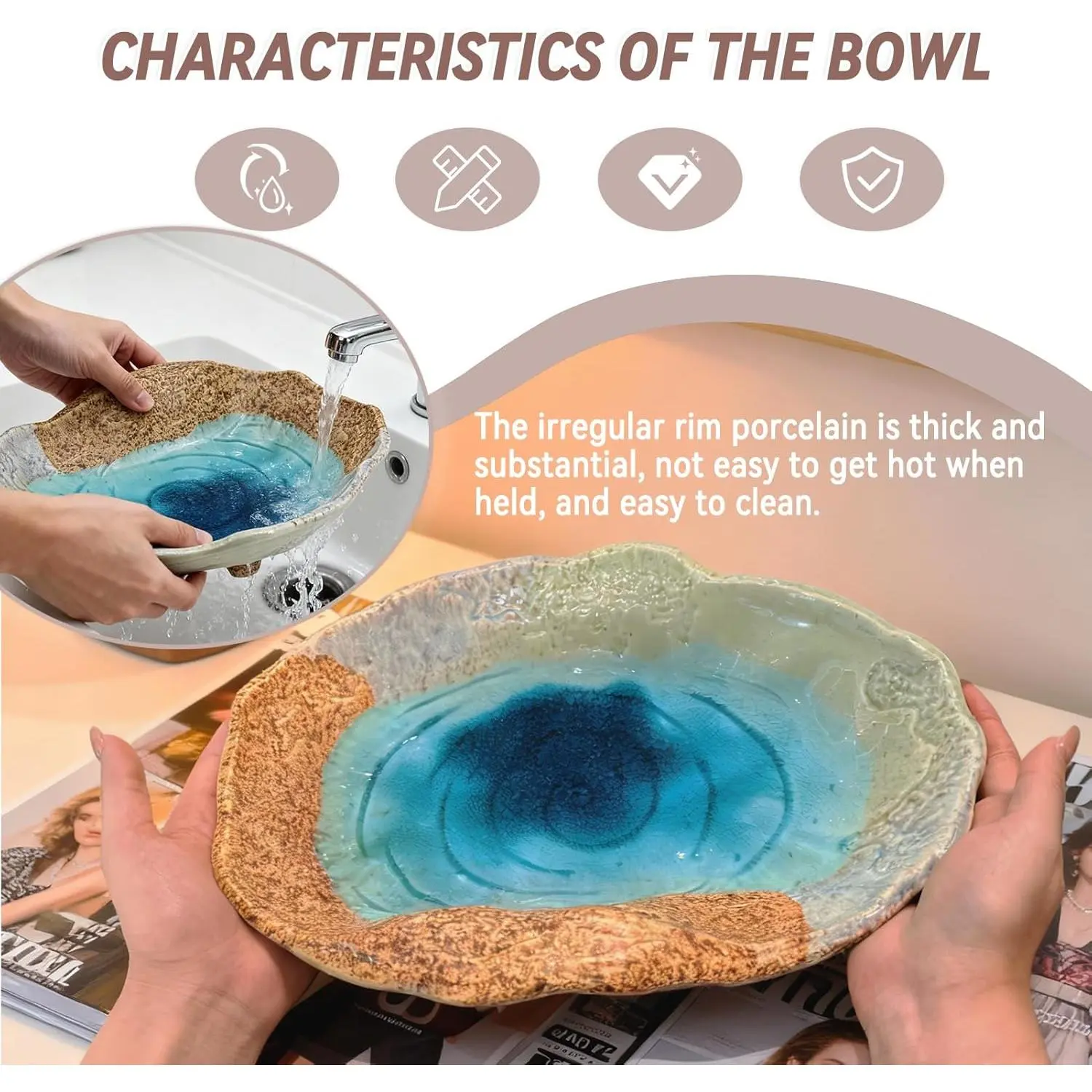 • Versatile Ceramic Bowl: This 12-inch ceramic fruit bowl with a pedestal is perfect for various uses. It can serve as a fruit bowl, soup bowl, snack bowl, key bowl, Halloween candy bowl, jewelry holder, or dish. It's also a great decorative piece for dining tables, parties, or kitchen countertops. Ideal for home, kitchen, or room decor.
