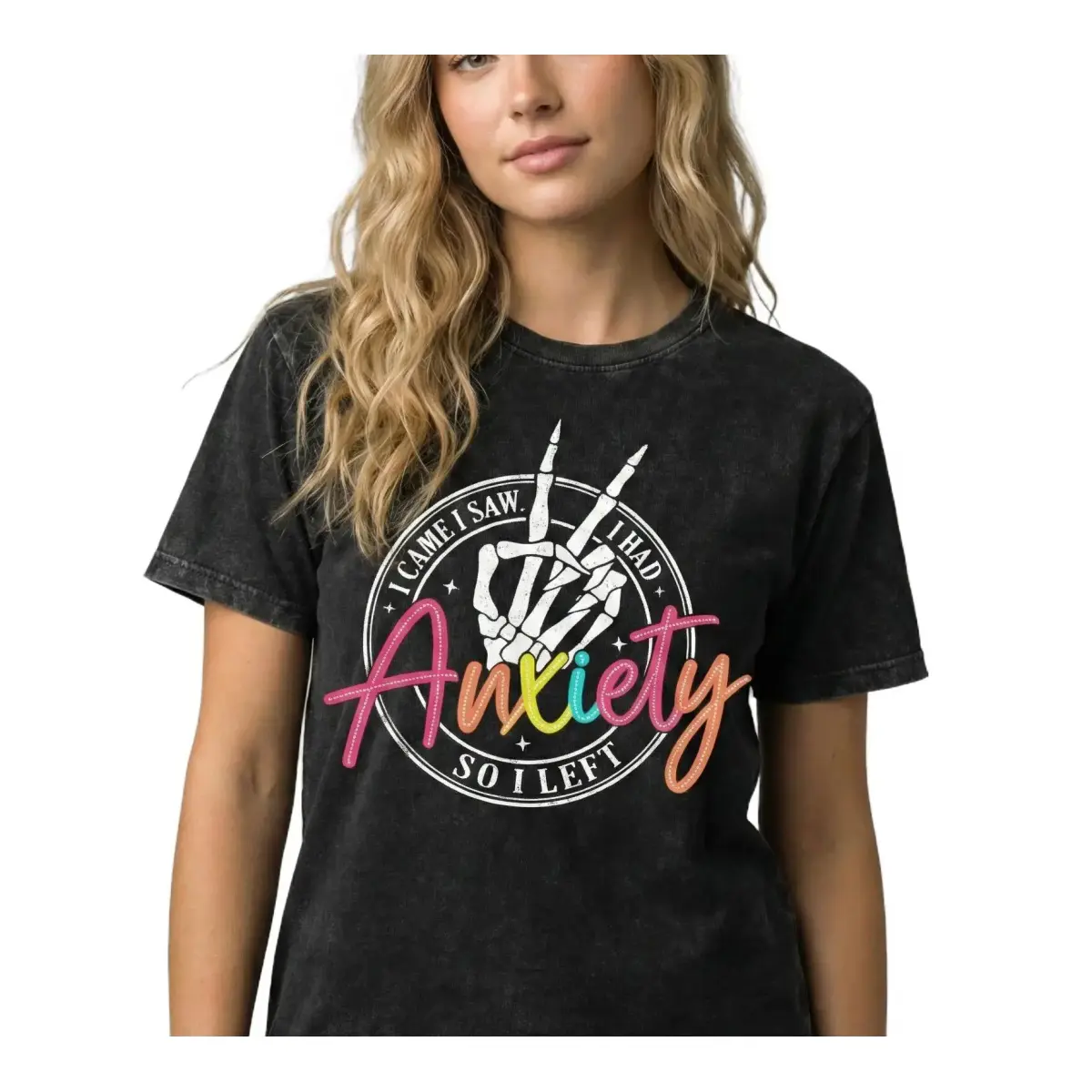 "I Came I Saw I Had Anxiety So I Left" is a bold graphic tee.It's a men's casual black T-shirt.The abstract portrait print adds a unique touch.Perfect for casual outings or relaxing at home.It's your go-to for everyday wear.🌟