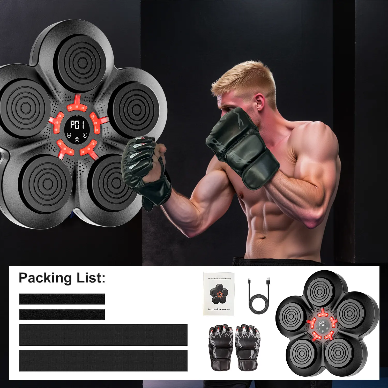 2026 Music Boxing Machine for Adults and Kids, Smart Bluetooth Boxing Training Equipment with Gloves Wall Mounted, Workout Punching Machine for Home,Office and Gym