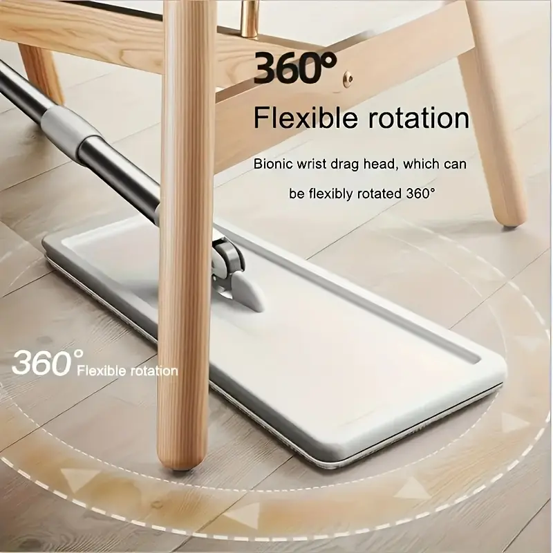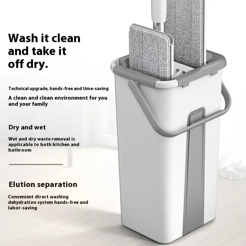 Home Mop and Bucket Set with Wringer – Flat Mop System for Efficient Floor and Wall Cleaning, Includes 2 Reusable Microfiber Pads, Ideal for Bedroom, Bathroom, Kitchen, Living Room, Household Cleaning Tools | Sleek Mop Design | Metal Handle Mop, Mops for