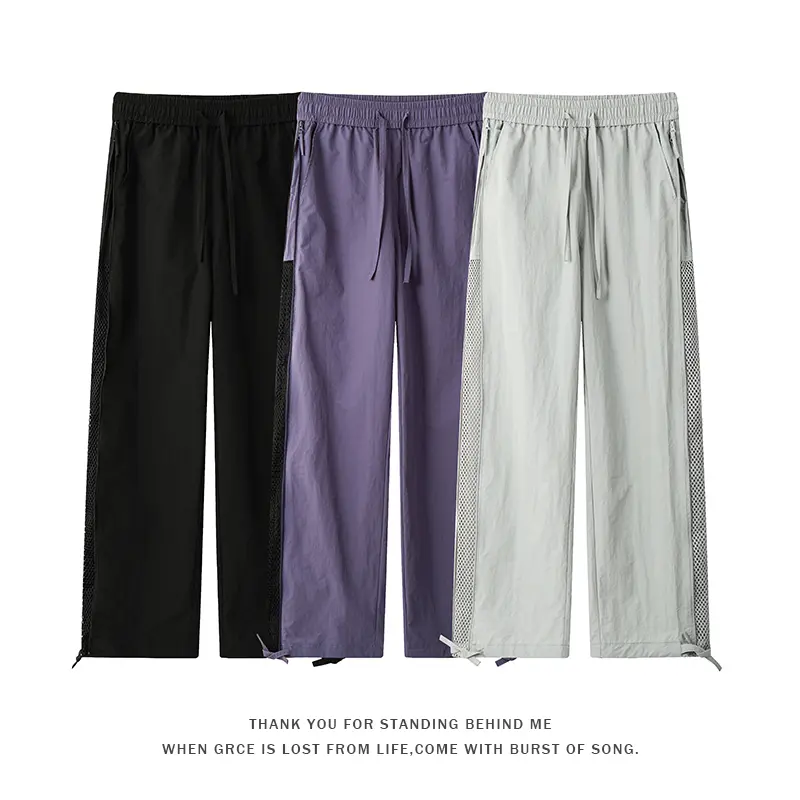 Men’s summer American-style quick-dry wide-leg casual pants with mesh for excellent breathability and zippered panels