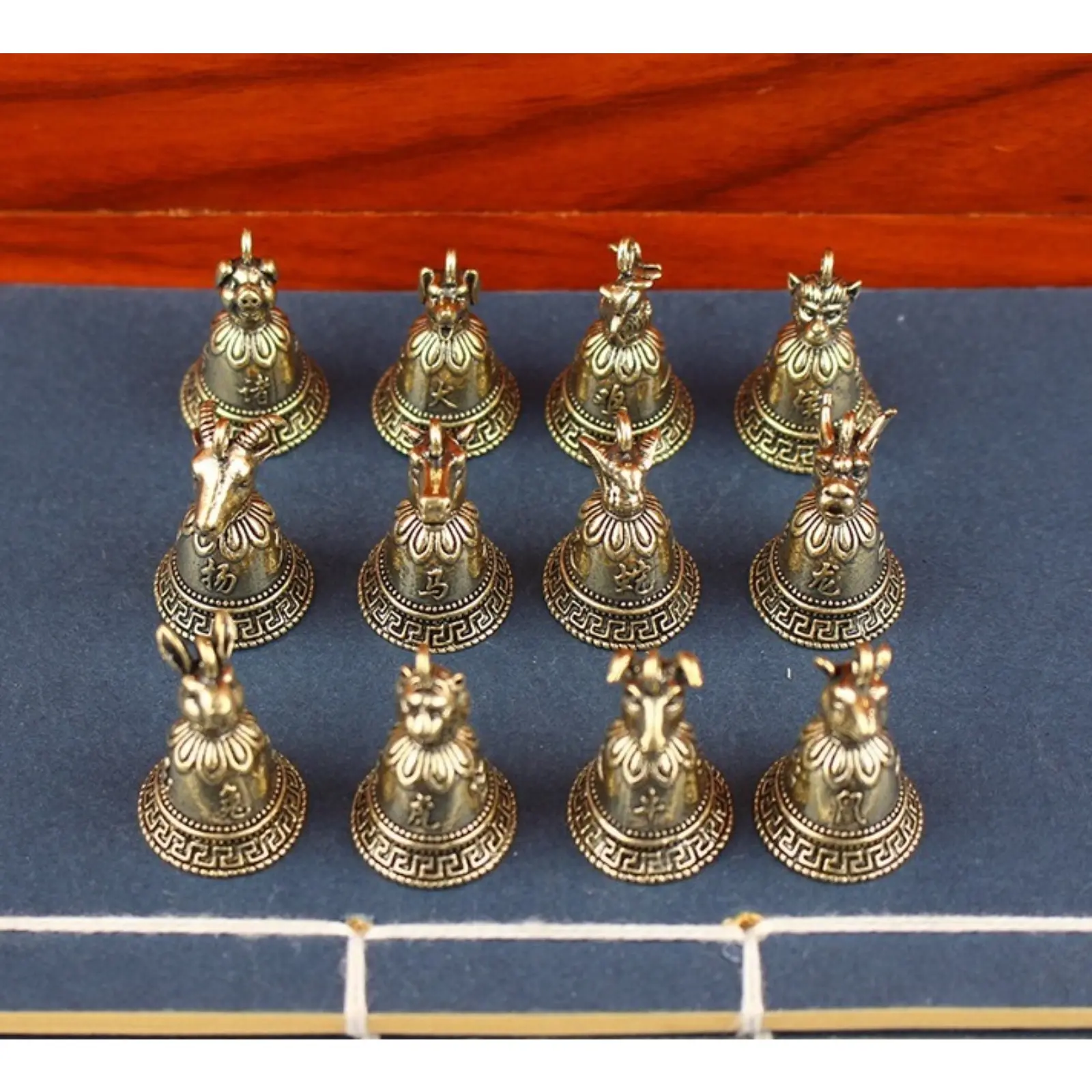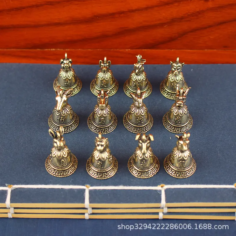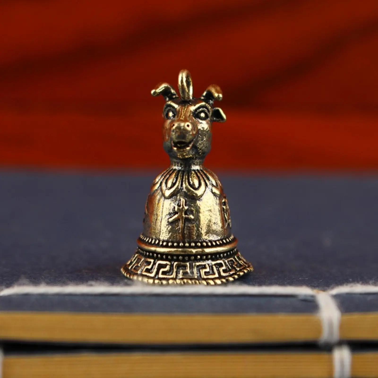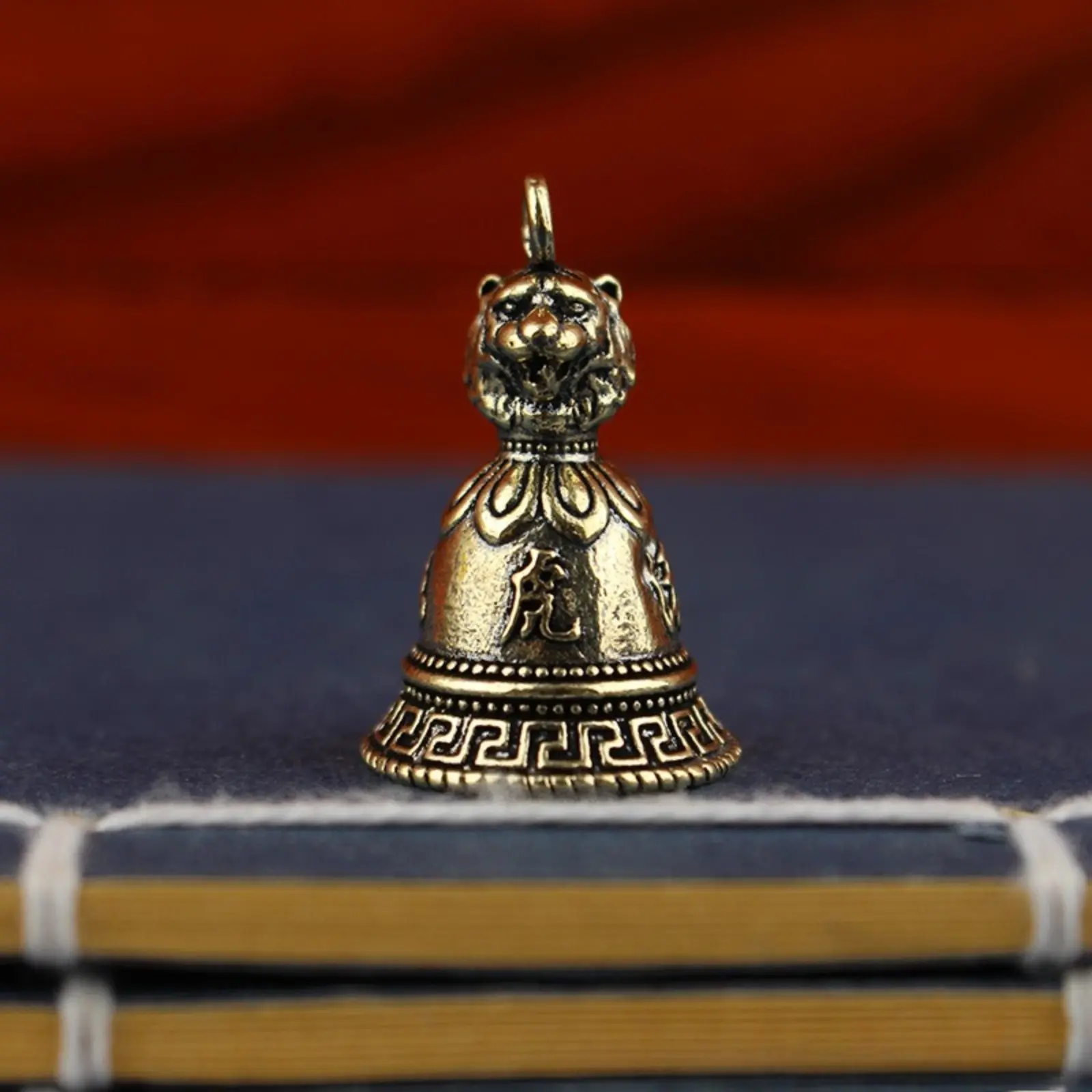 Vintage Brass Chinese Zodiac Bell Keychain, Retro Lucky Bell Pendant for Men & Women, Portable Hanging Charm for Bags & Car Keys Decor