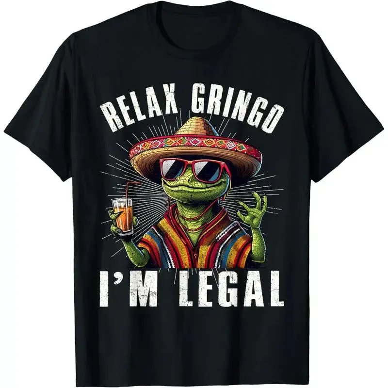 shirts - Cotton Short Sleeve Relax Gringo I'm Legal Mexican Lizard Funny T-Shirt for Men Women - designer hoodies