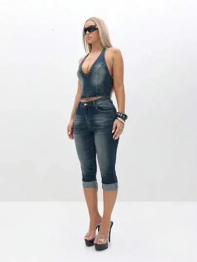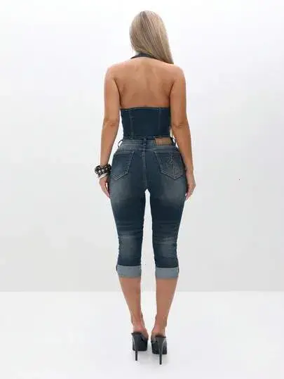 BABYPHAT Stretch Denim Capri Jeans With Turn Up Hems Mid Rise Cropped Pants Summer Casual Bottoms Curvy Jeans