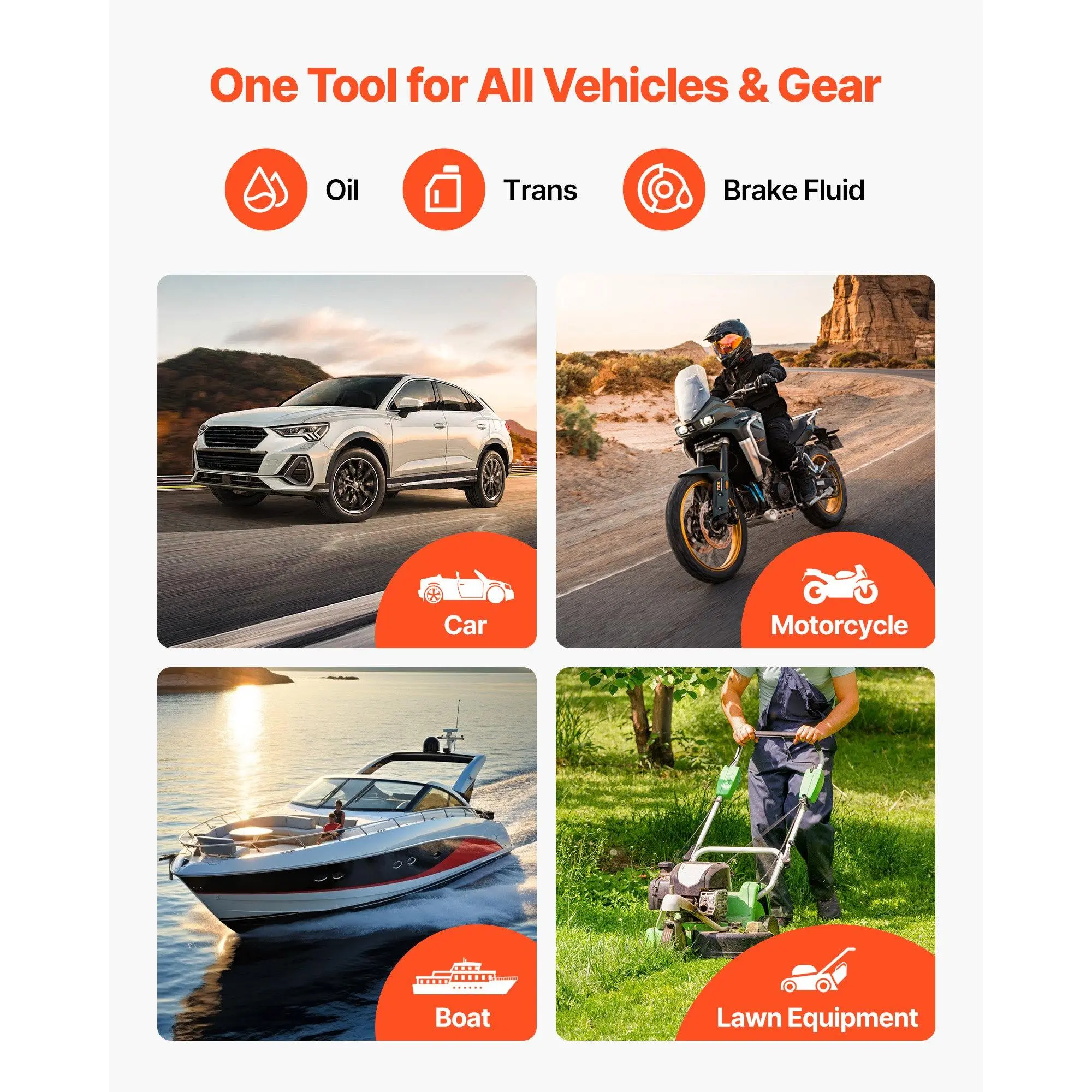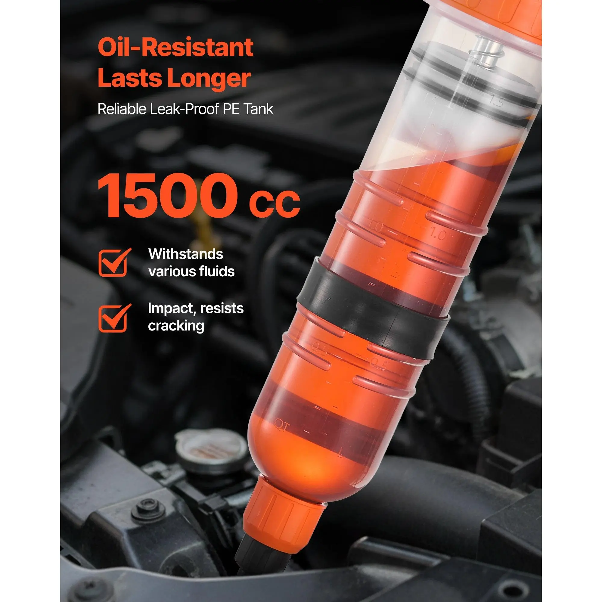 Air-Tight, No-Drip Seal: This fluid extractor uses dual rubber piston rings and a twist-seal spout to lock in air.You cut hose leaks and drips, keep the workspace tidy, and stay focused on the taskTwo-Way Manual Pump: This hand oil extractor pump needs no power or air line.You build steady suction to extract or refill fast-great for home garages, roadside fixes, and quick shop jobsMulti-Size Adapters: This fluid extractor pump kit includes assorted adapters for a snug port fit.You match sizes in seconds, draw or dispense precisely, and help reduce spills and cleanupWide Compatibility: This vacuum fluid extractor handles engine oil, coolant, brake fluid, and transmission fluid.You service cars, trucks, motorcycles, boats, and lawn gear with one tool1500 cc Durable Tank: This semi-transparent PE reservoir of the dipstick oil extractor resists corrosion and aging. You monitor levels at a glance and tackle frequent use with confidenceVEVOR 1500CC Fluid Extractor, Manual Automotive Fluid Pump Extractor, Oil Syringe with Long Hose and Extension Tubes Easy Oil Change, Suction Pump for Lawn Mowers Cars Ships Golf Carts Motorcycles