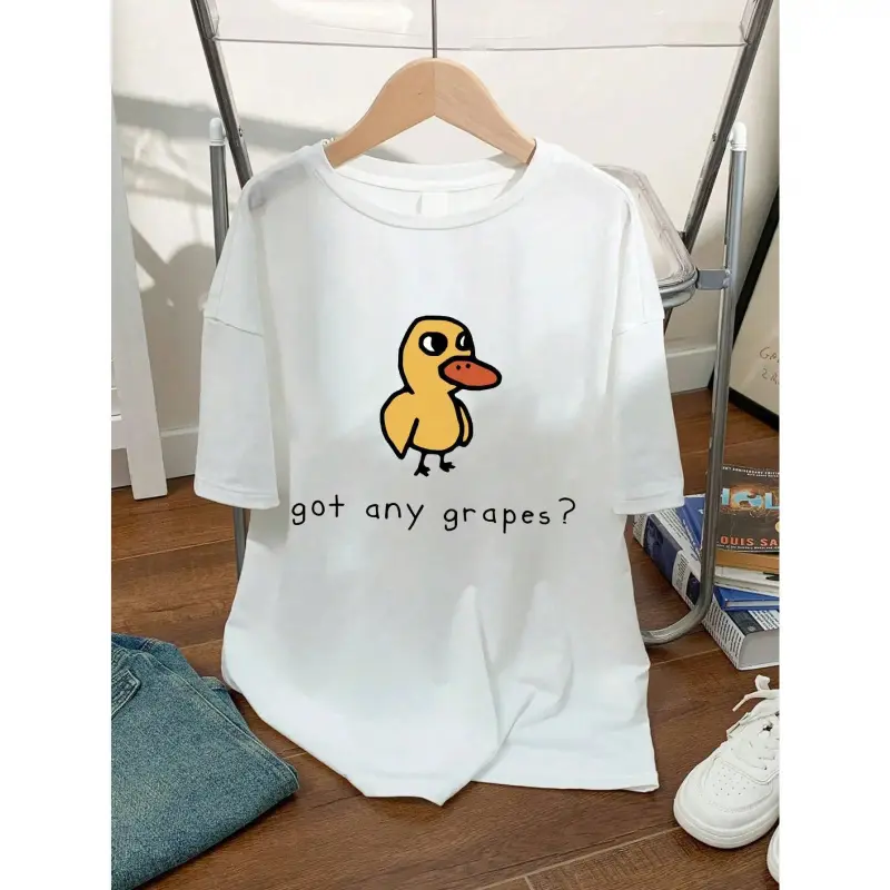 Teen Girl Cartoon Duck And Slogan Print Graphic Tees For Girl Short Sleeve T Shirts,Teen Girl's Summer Tops Crewneck Shirt Blouse