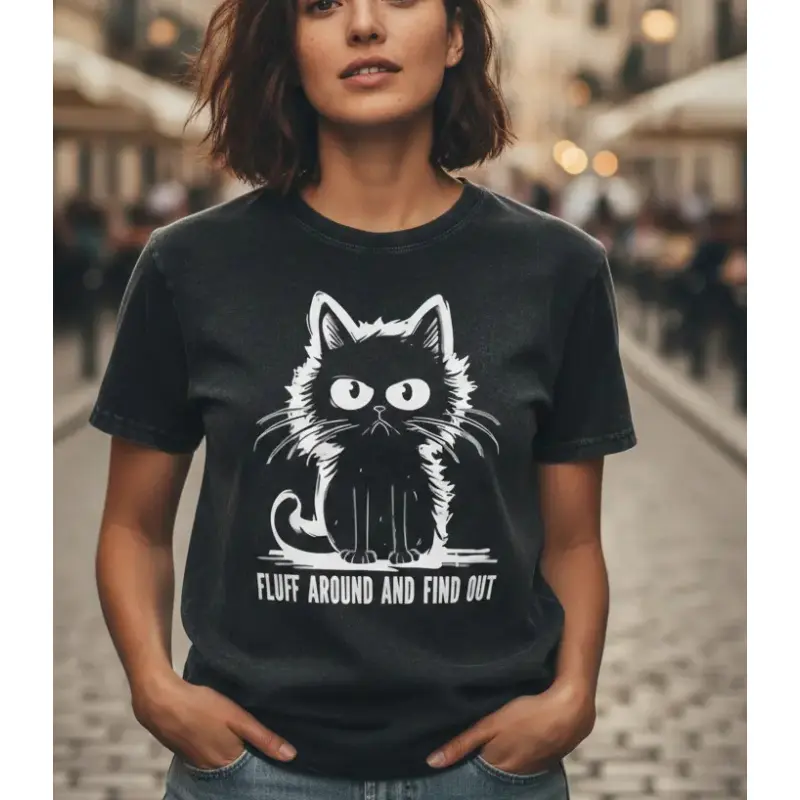 Funny Cat Shirt Fluff Around And Find Out Gifts Men Women T-Shirt "Fluff Around And Find Out" Graphic Tee, Cute Yet Savage Cat Attitude Shirt, Sarcastic Humor Tee for Men Women, Perfect Gift for Cat Lovers