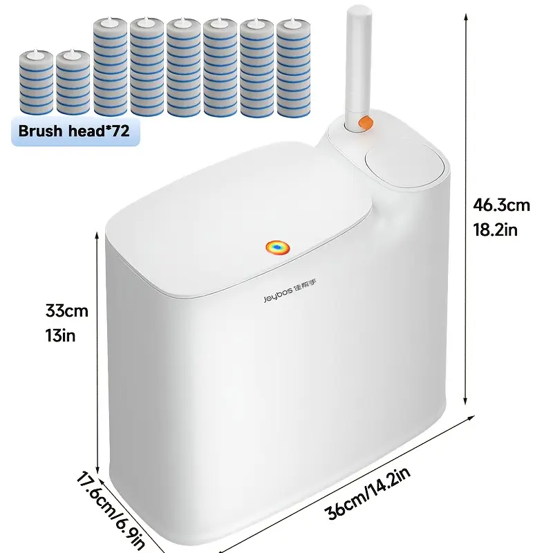Product Details: This waste bin is constructed from ABS and PP materials.It features a rotating brush head that allows for easy and thorough cleaning of edges and corners.The material is durable and resistant to shedding.If you find any parts missing or damaged upon receiving the waste bin, please reach out to us for assistance.