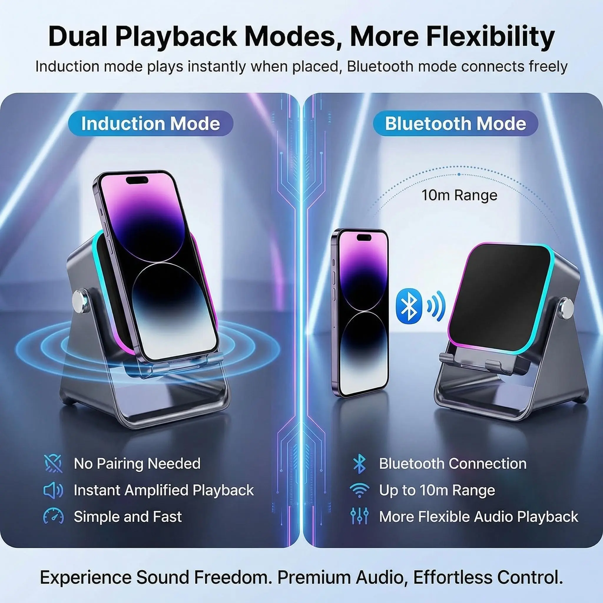 Switch freely between smart induction mode and Bluetooth mode for easy listening anytime, anywhere.