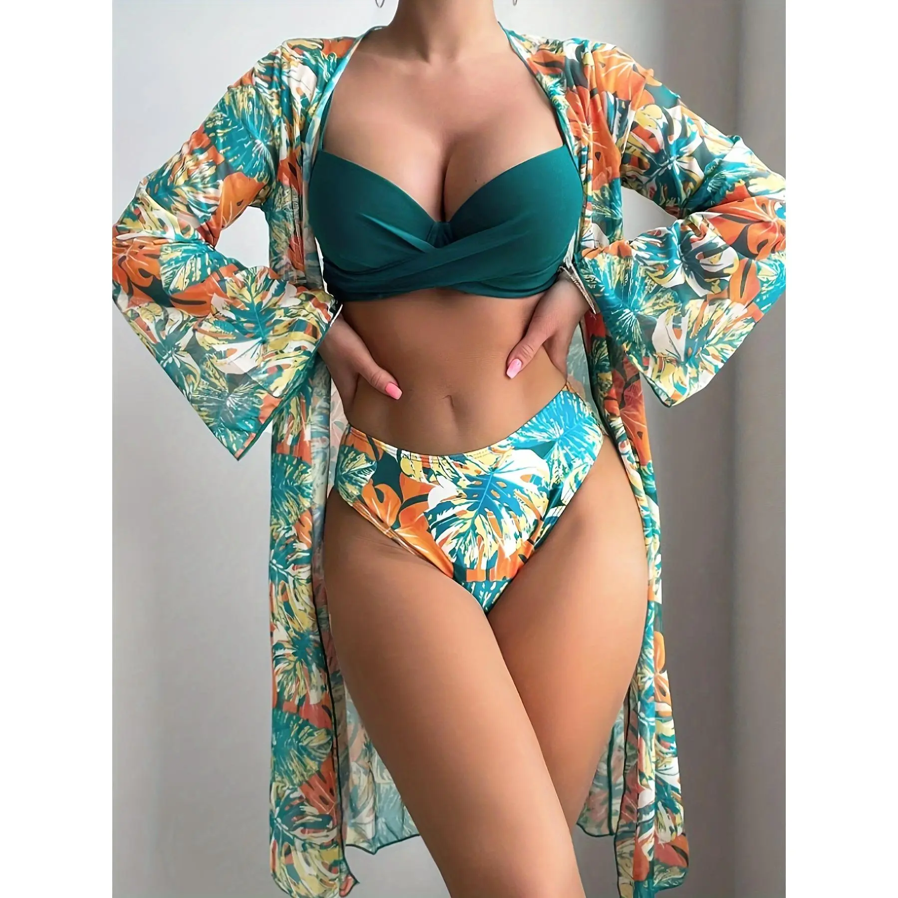 🌴 Three-Piece Swimsuit Set with Summer Beach Plant Prints 🌴