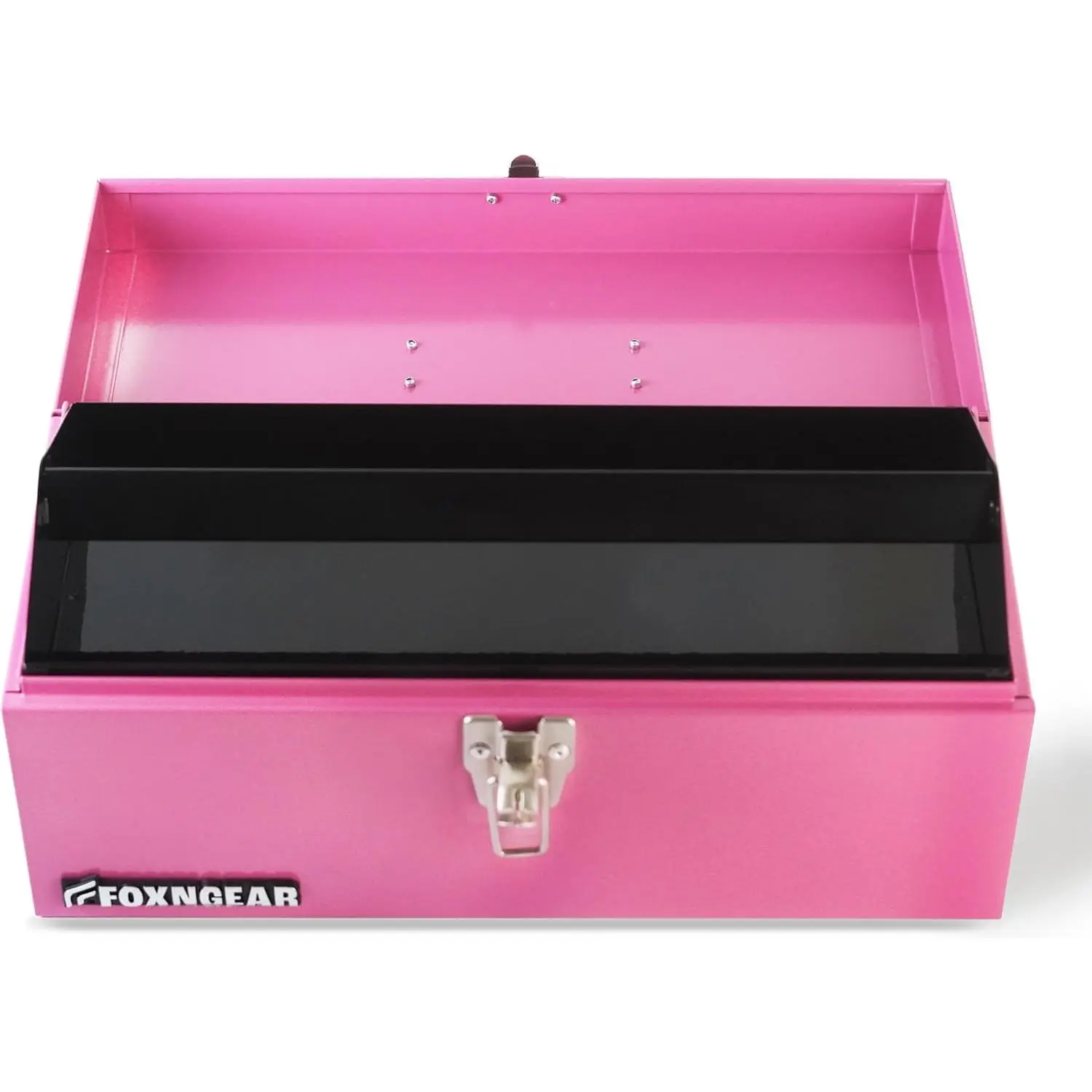 Flat Top Steel Hand Carry Toolbox:Hand-away portable tool box measures 16" L x 7" W x 7" HInterior Dimensions: L 15-4/3", W 6-3/4'', H 5-3/8''.It has a removable tray for nails, screws, glue and other small items.Protect Your Tools: With solid professional quality construction, this 18 Gauge (1.2 mm) heavy-duty steel toolbox features a powder-coated glossy finish and central latch clasp locking system.Metal toolbox: The 16" toolbox comes with a flexible handle for easier carrying and a removable tray for extra storage.Significantly heavier and sturdier, designed to last.Store tools at your home, workshop, garage, car, or job site.Makes for an ideal accessory for the professional mechanic