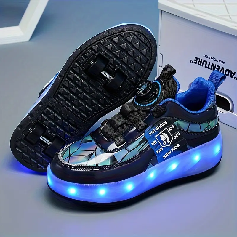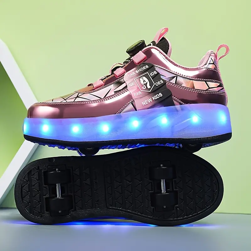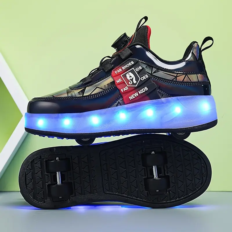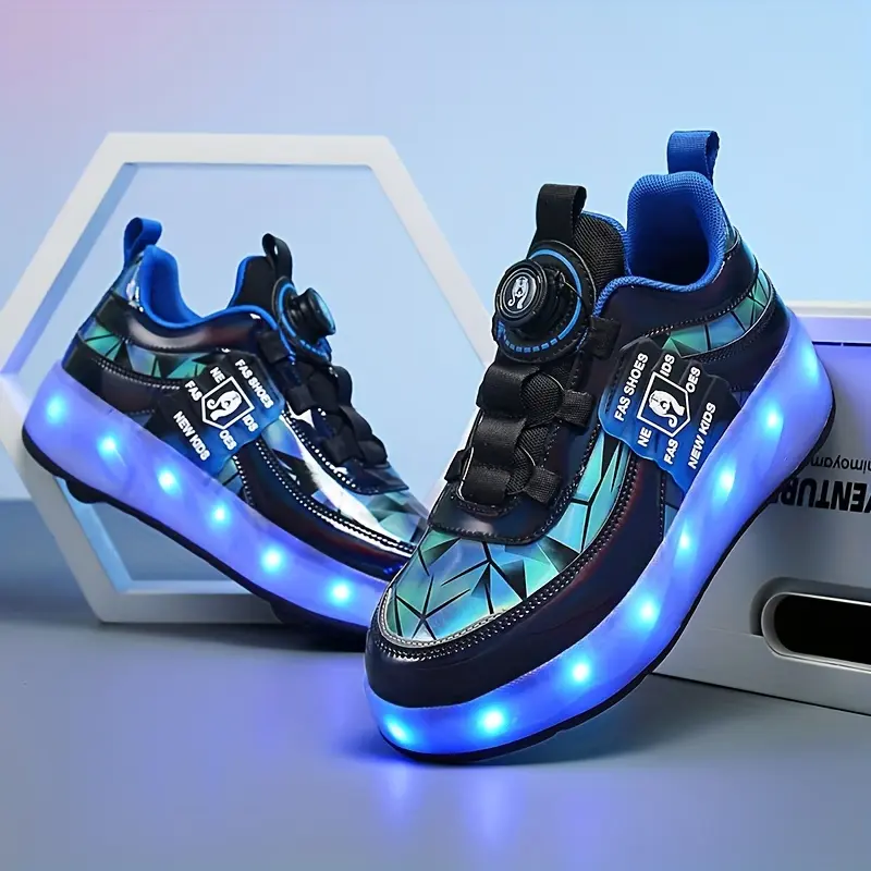 (New)Unisex Kid's Fashion LED Light Up Roller Shoes With Rotating, Comfy Detachable Wheel Skate Sneakers Boy's & Girl's Teen Outdoor