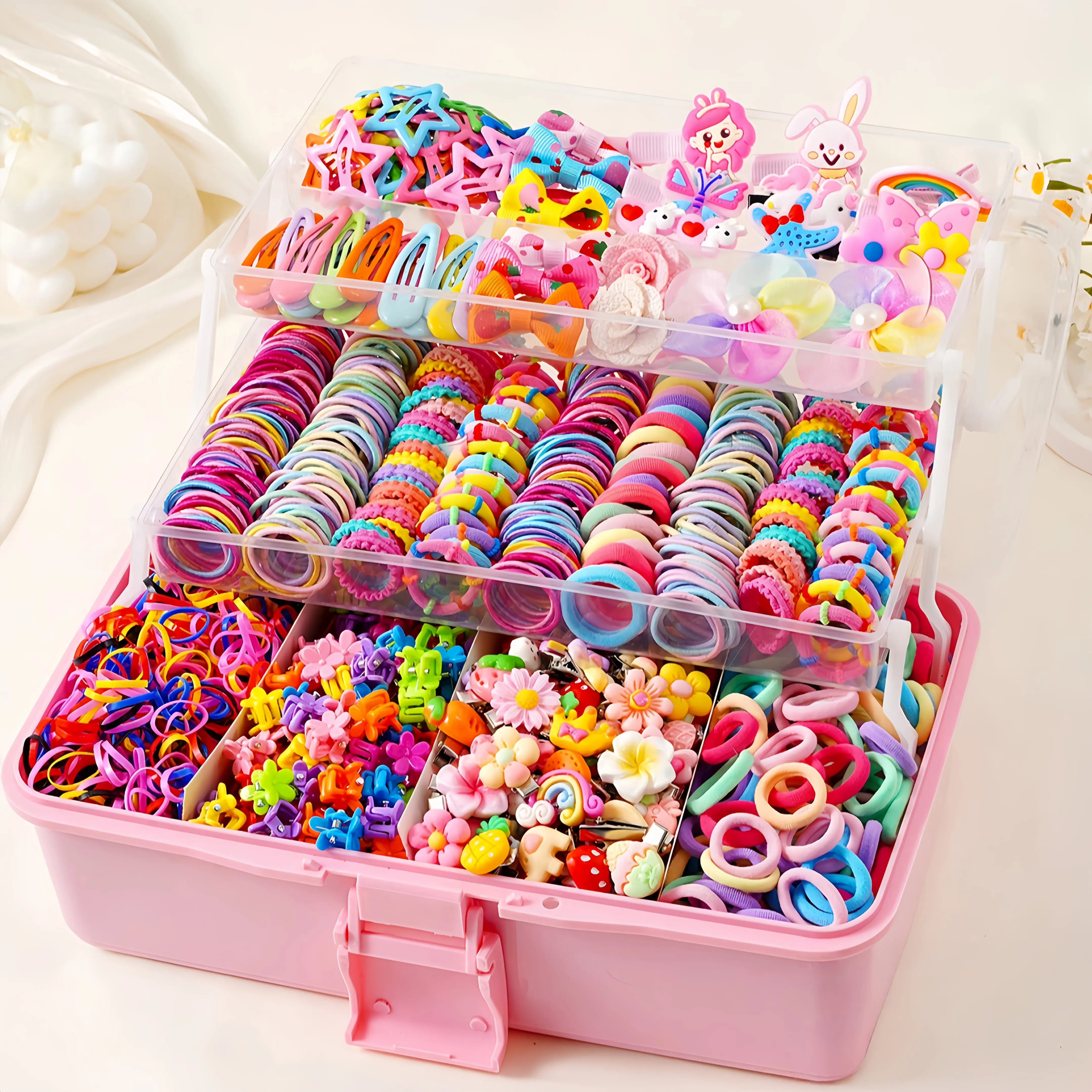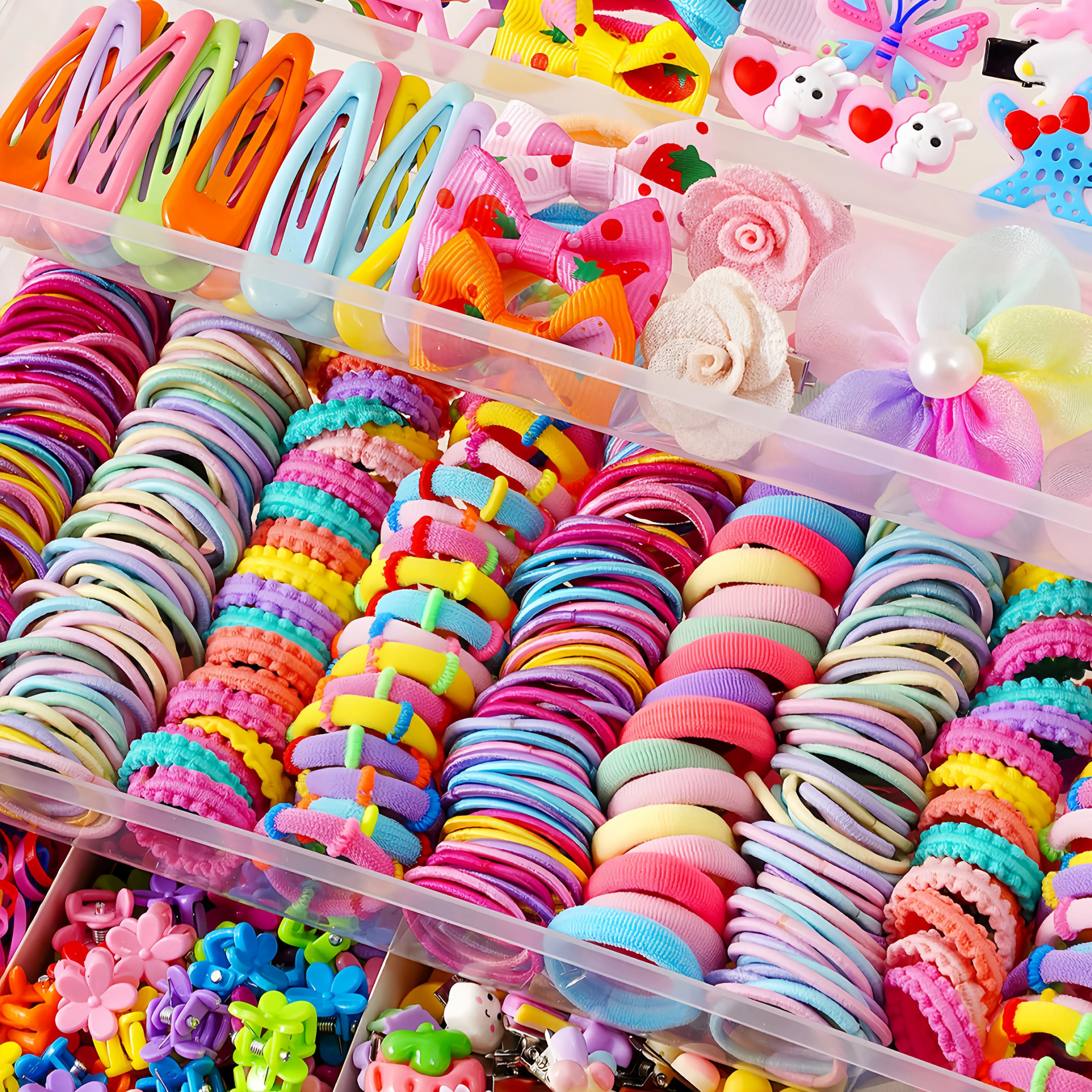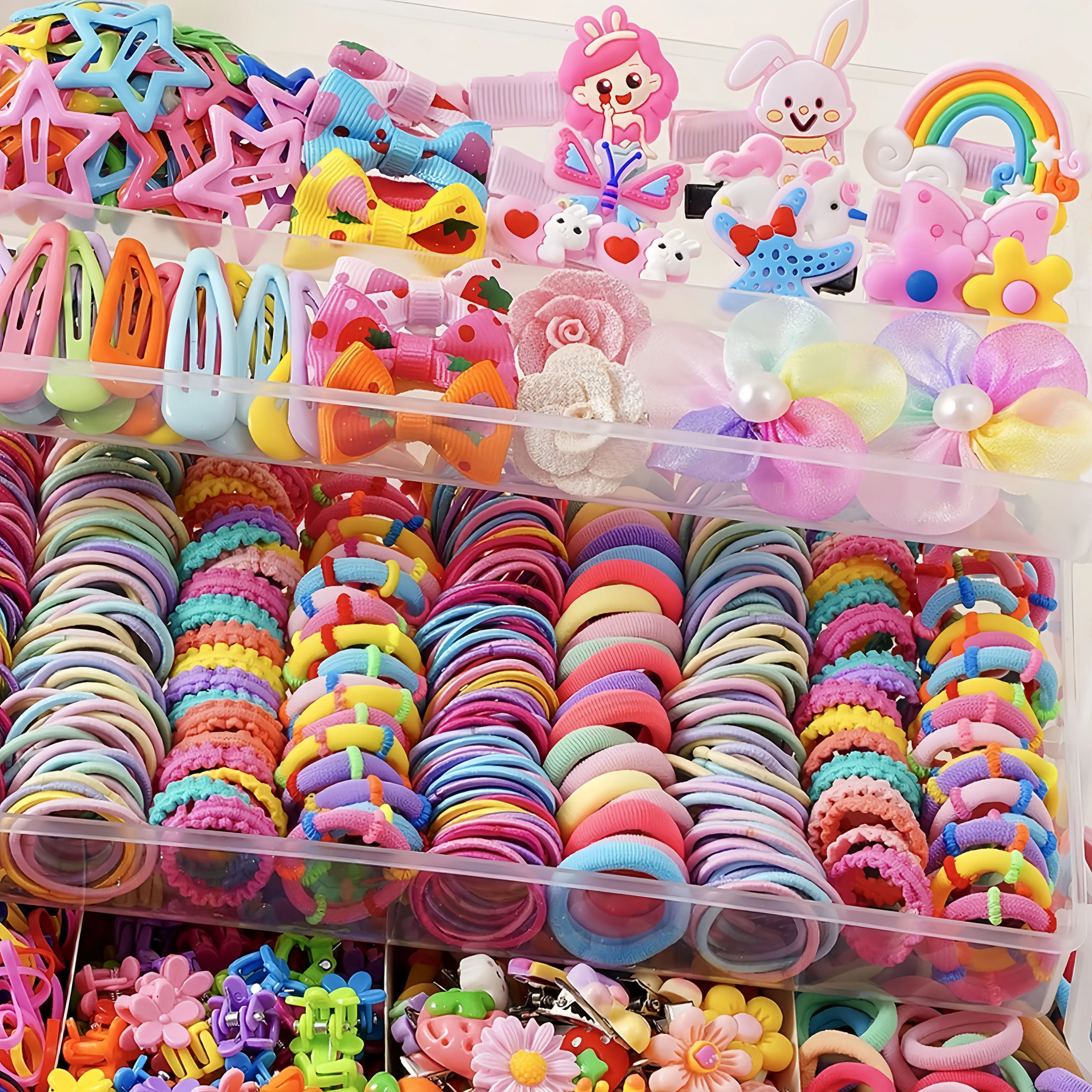 (New)[Hair Accessory Set] 200pcs/618pcs Dopamine Sweet Hair Accessory Set For Little Girls With Combination Of Bow Clips, Princess Clips, Star & Teardrop Hair Clips, Flower Clips, Simple Hair Ties. Suitable For All Seasons, Excellent Gift hion Lovers