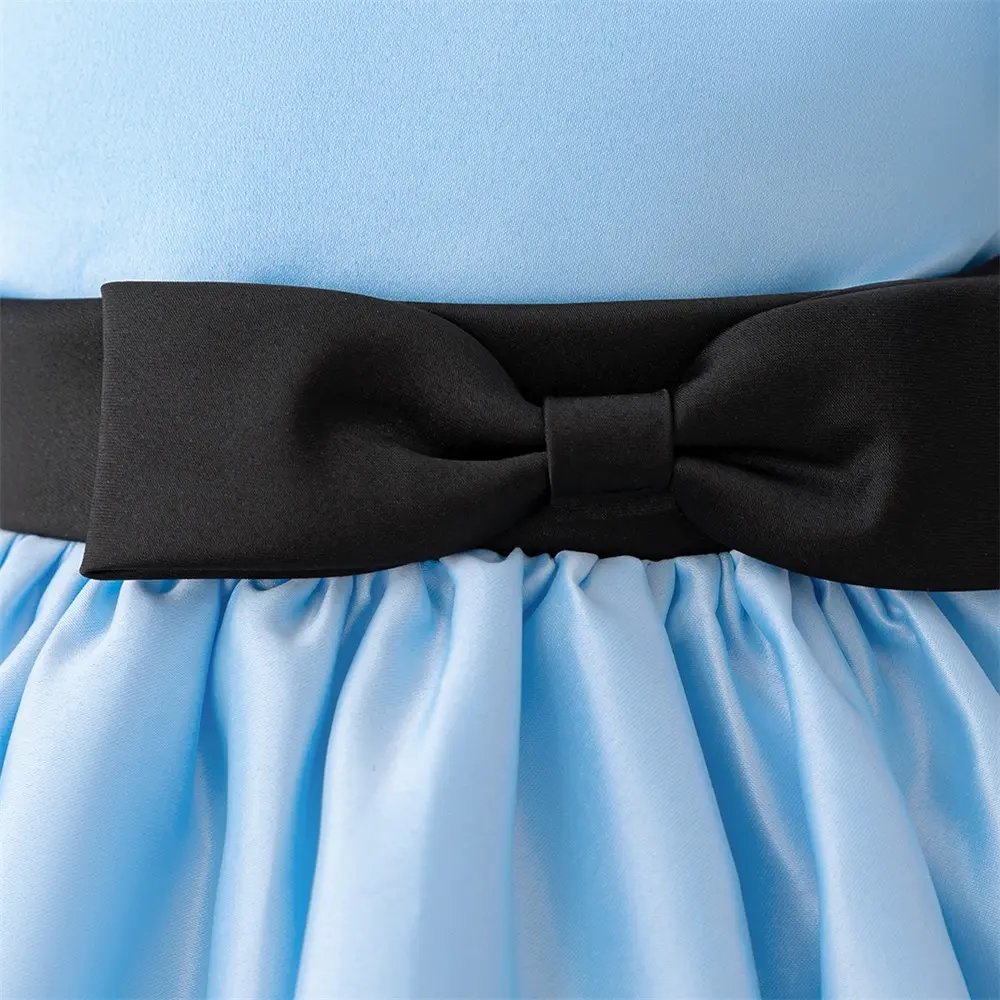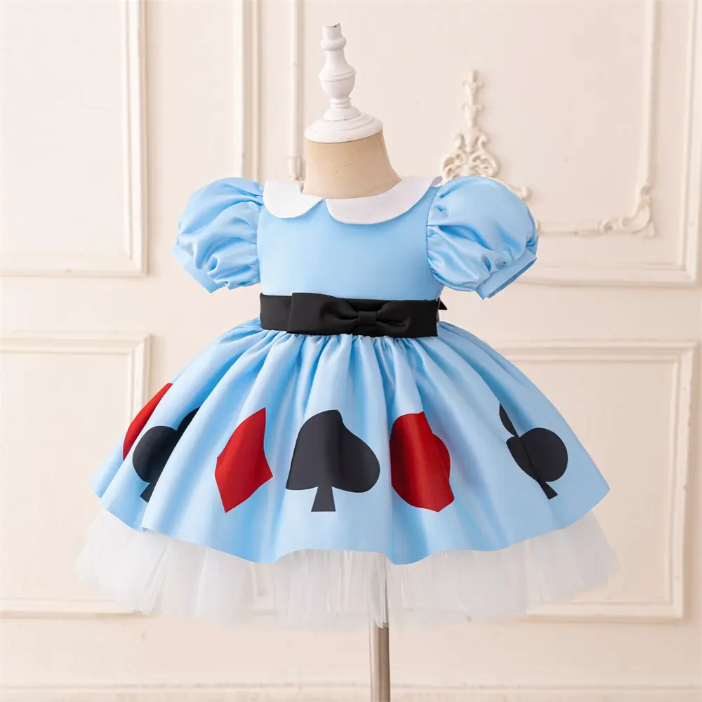 (New)01 Kids Young Girls Christmas/Halloween/Party Dress Tulle Bubble Sleeves Blue Mesh Stage Performance Alice in Wonderland Dress Bead Decoration Princess Party Outfit(Gift)11