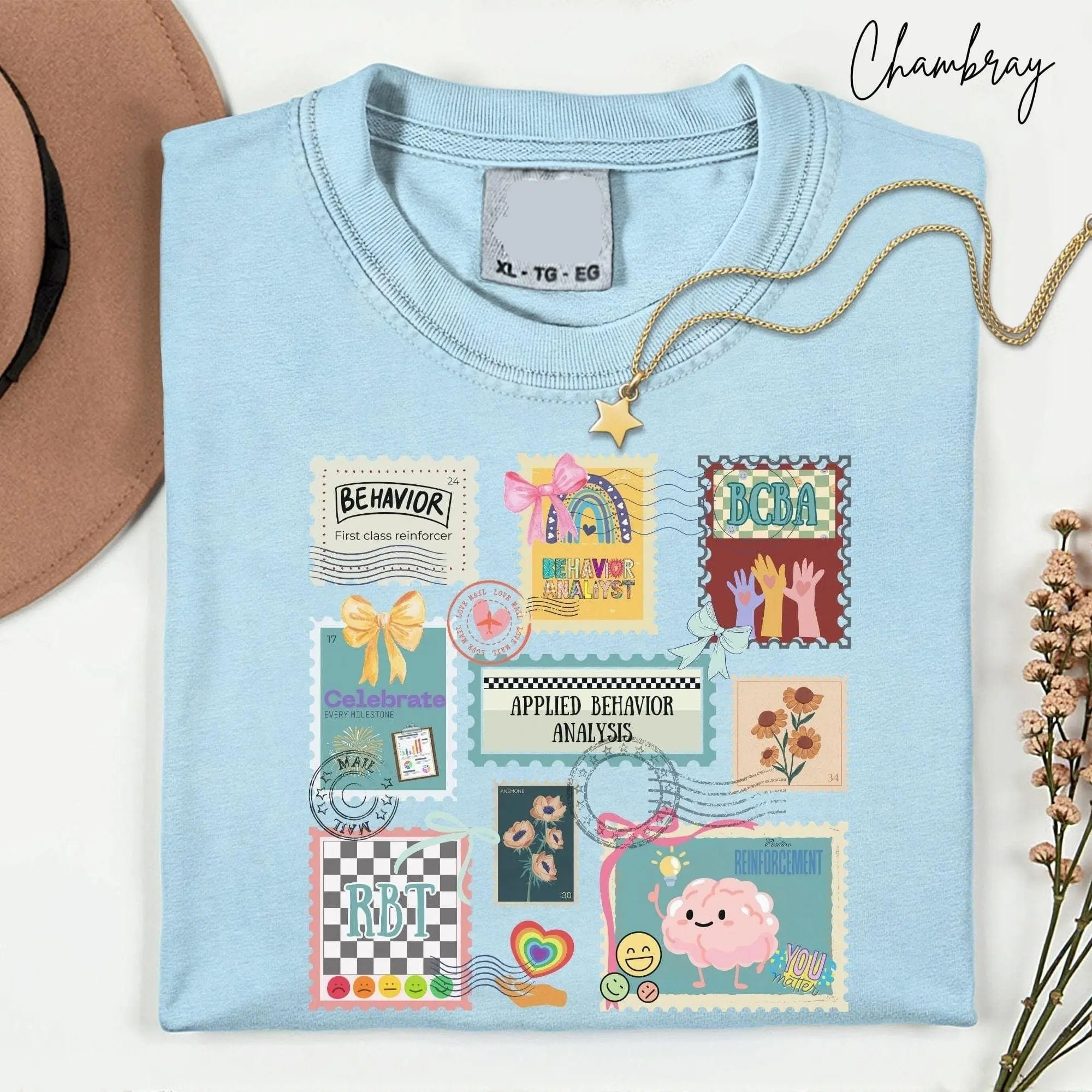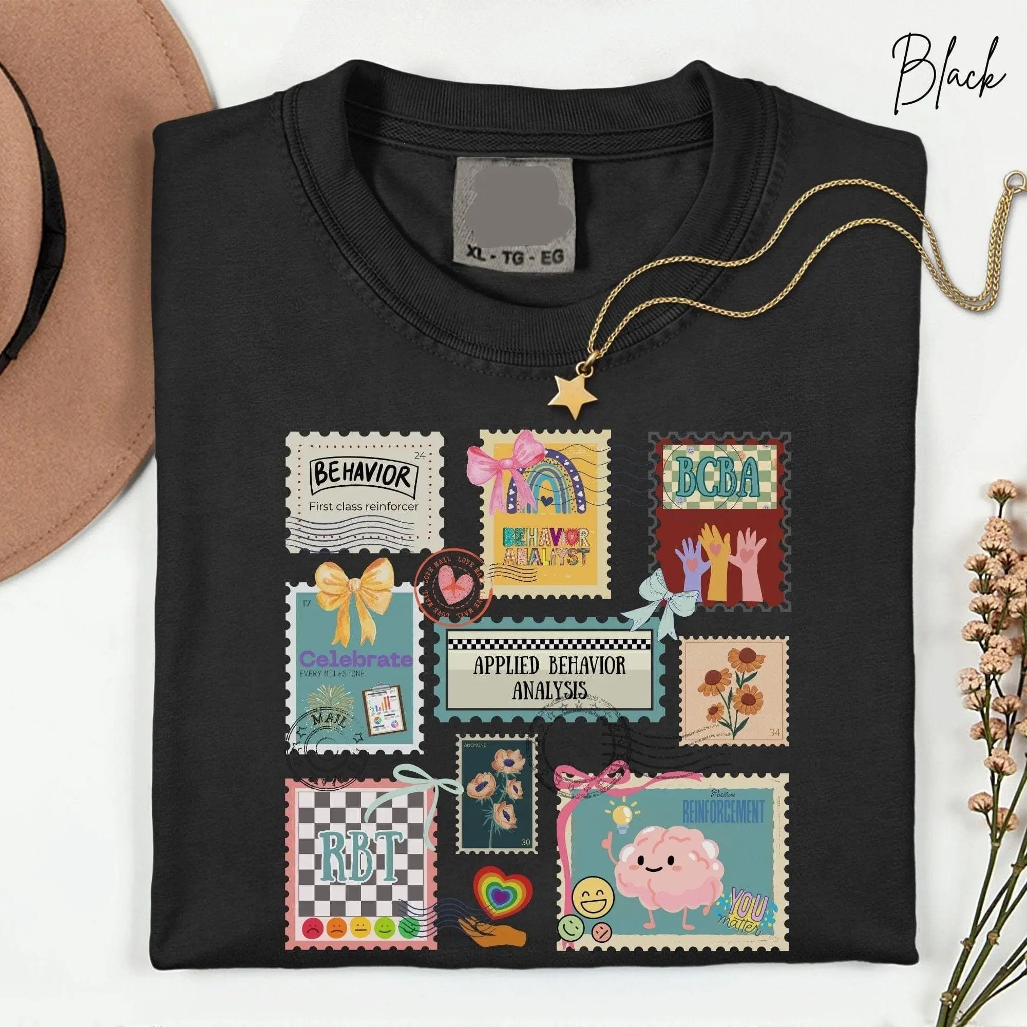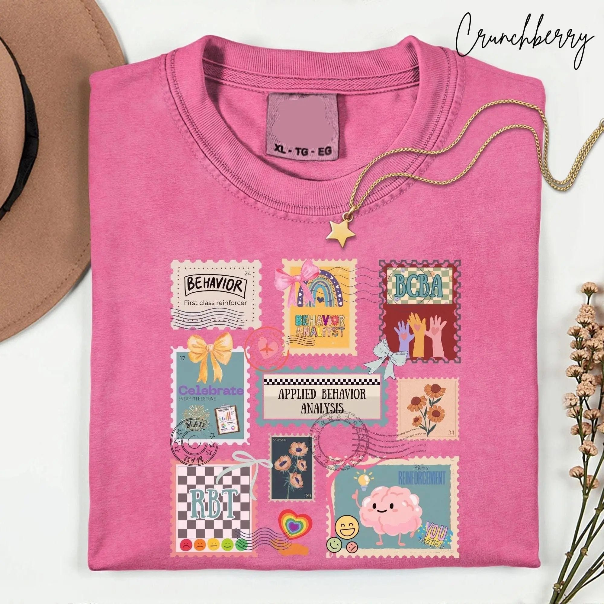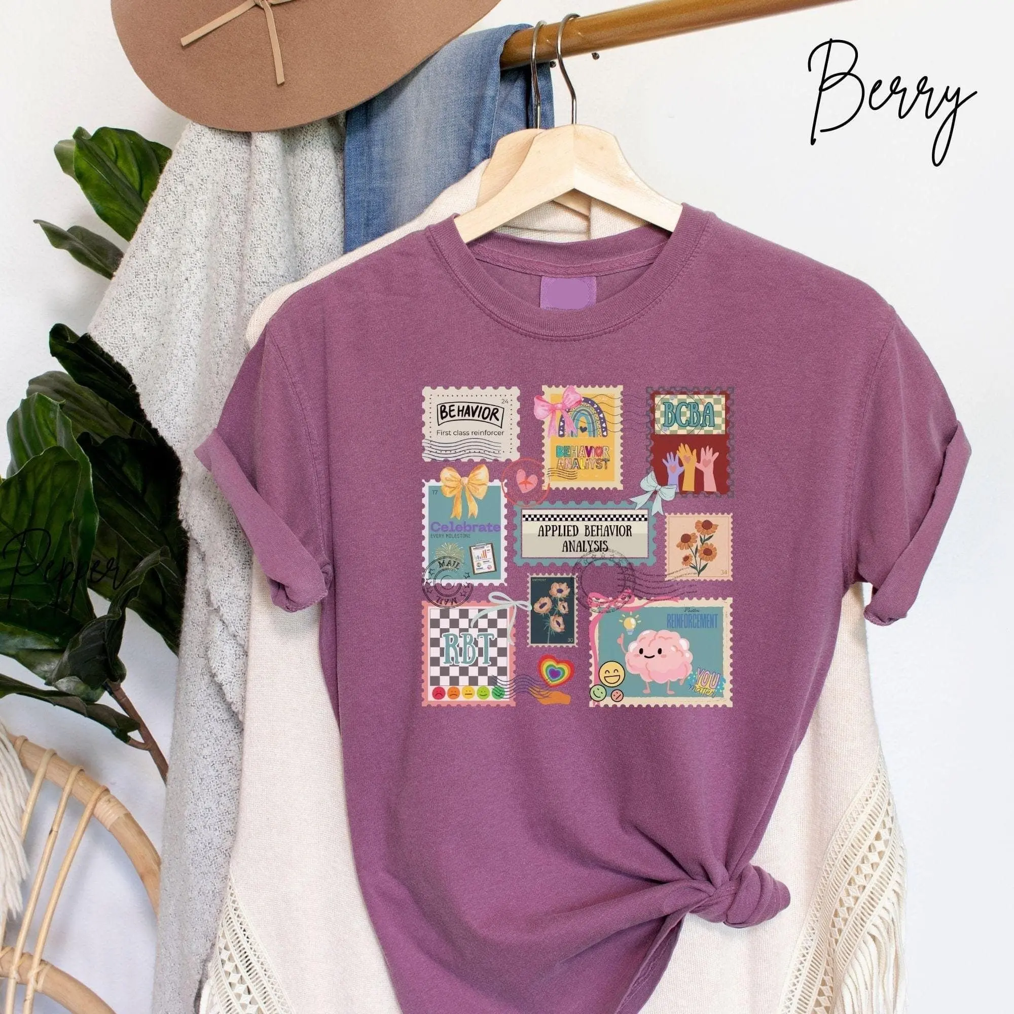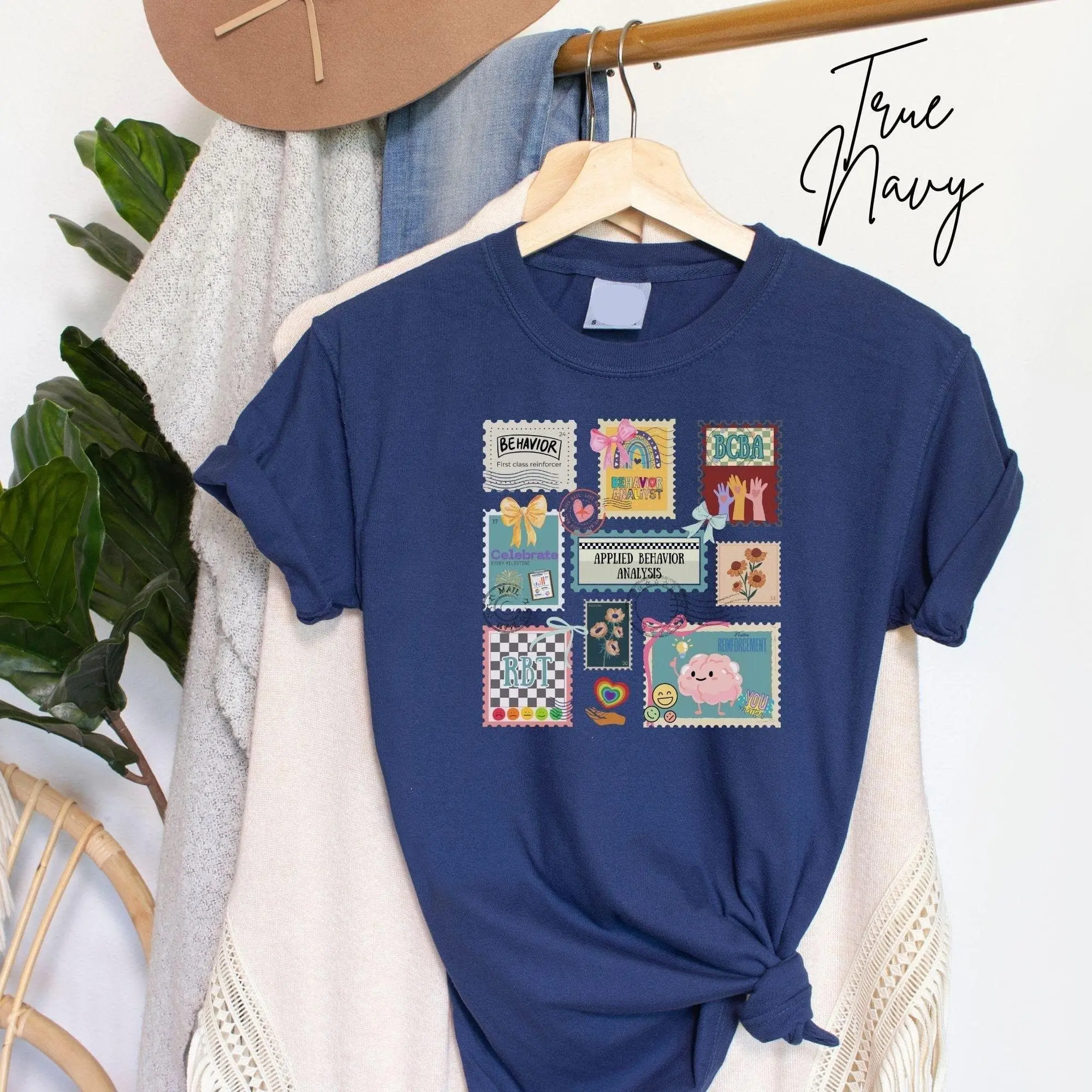 5. Behavior Therapy T-Shirt, BCBA RBT Shirt, ABA Therapist Gift, Postage Stamp Style Tee, Behavior Analyst Apparel