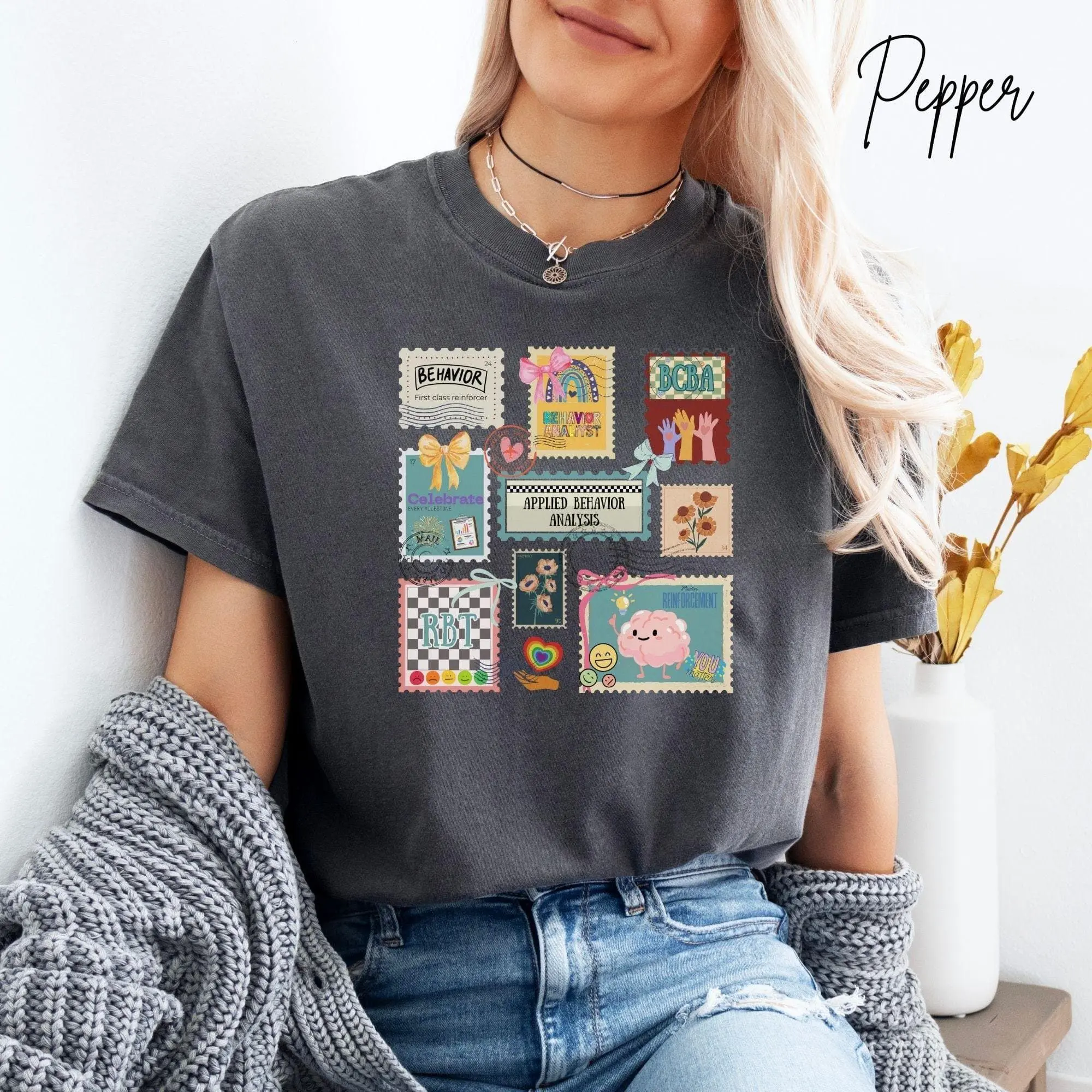 Behavior Therapy T-Shirt, BCBA RBT Shirt, ABA Therapist Gift, Postage Stamp Style Tee, Behavior Analyst Apparel