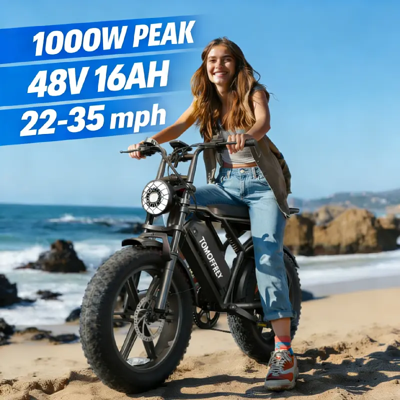 Conquer every terrain with this UL-certified electric bike. Perfect for daily commutes or weekend trails, it's built for performance. The 1000W motor effortlessly hits speeds up to 22 MPH. Enjoy a smooth ride with a full suspension system and 16-inch all-terrain wide tires. 🚴♀️