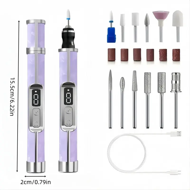Professional nail salon electric nail buffing machine, USB charging, digital display, portable nail file, nail removal, dead skin removal, nail shaping, complete set of nail art tools