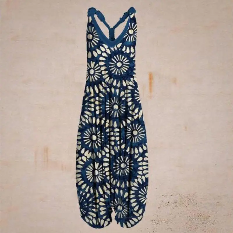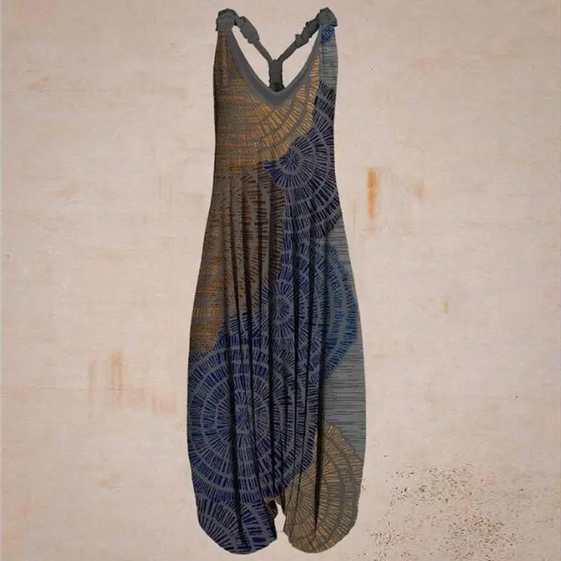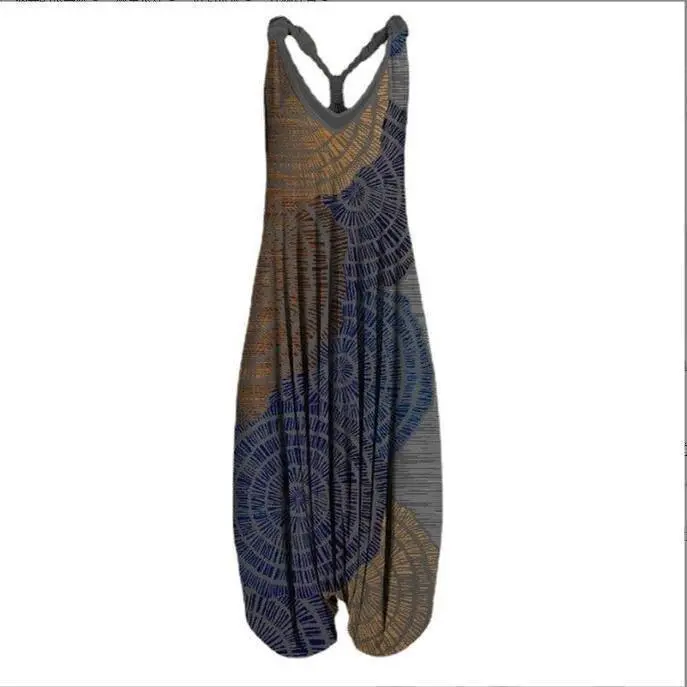 5. New Women's Ethnic Style Printed Loose Plush Large Lantern Pants Beach Strap jumpsuit233