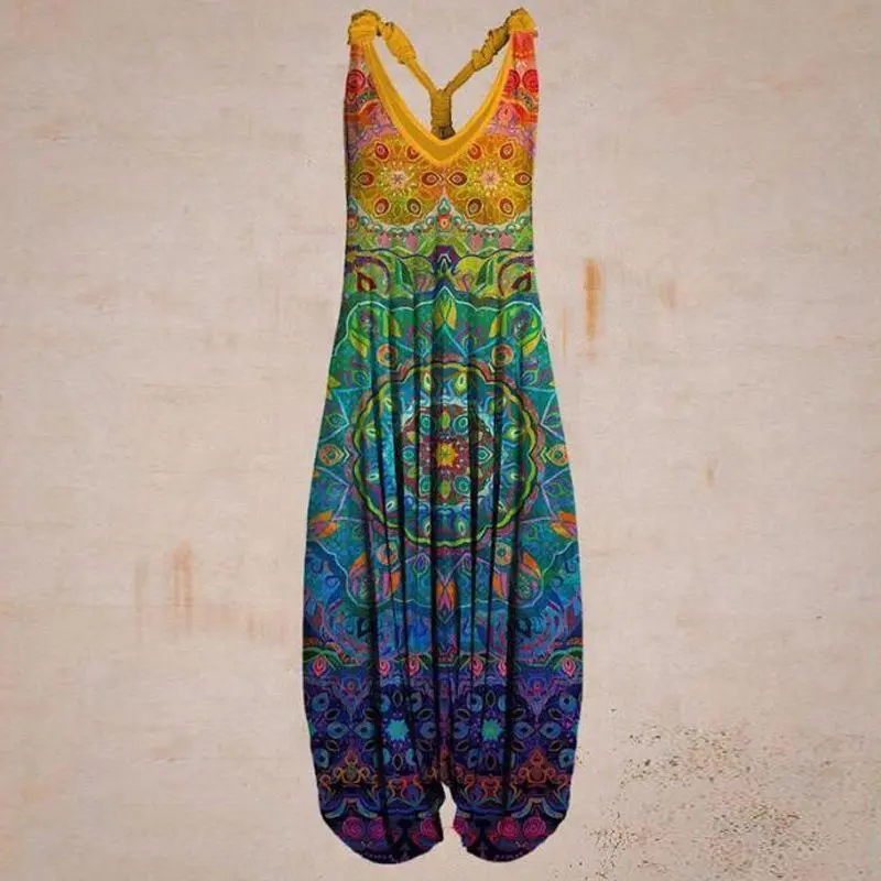 New Women's Ethnic Style Printed Loose Plush Large Lantern Pants Beach Strap jumpsuit