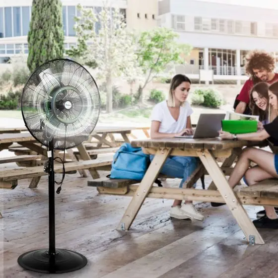 ·2-in-1 Misting & Pedestal Fan DesignCombines a powerful stand fan with fine misting technology to lower ambient temperatures and enhance outdoor comfort.