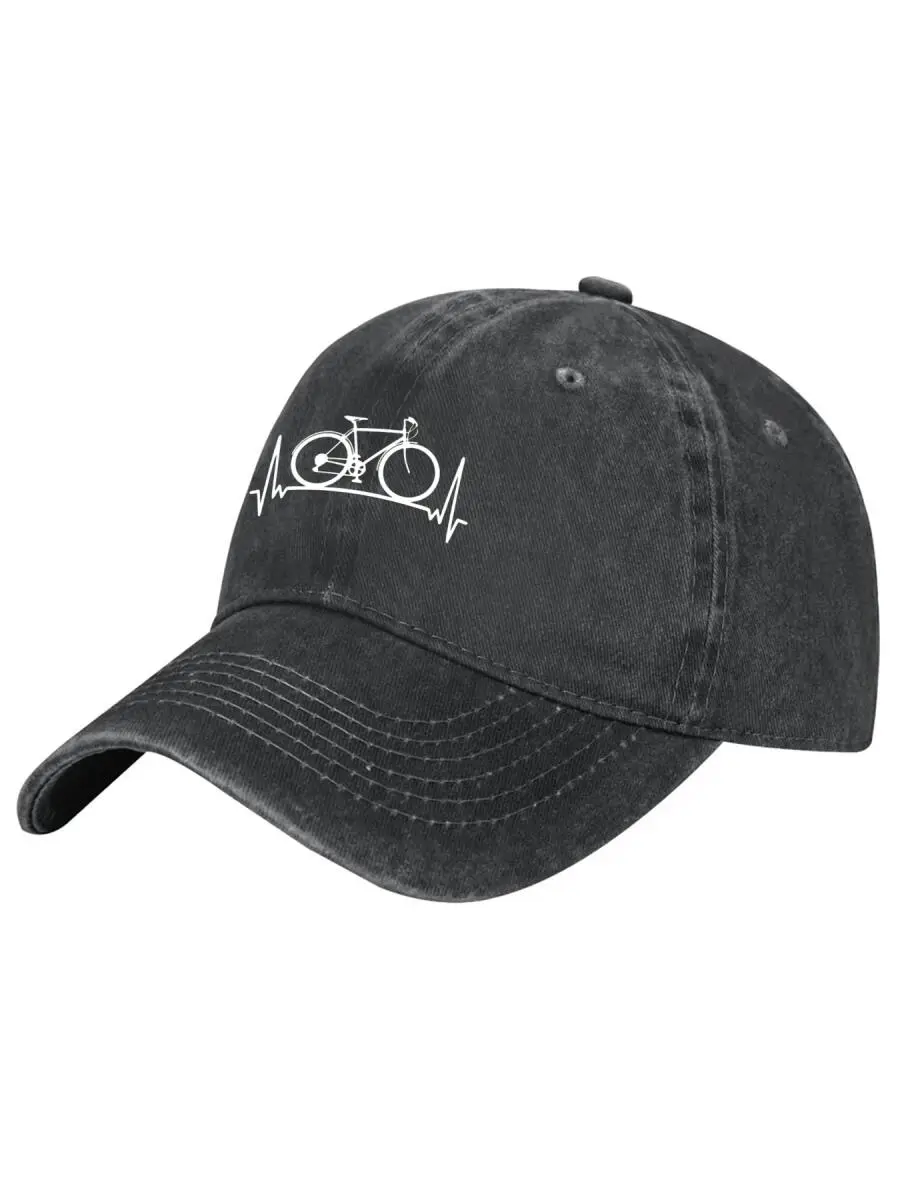 Bicycle Heartbeat Vintage Washed Dad Hat 100% Cotton Adjustable Baseball Cap for Casual Wear & Bicycle Enthusiasts