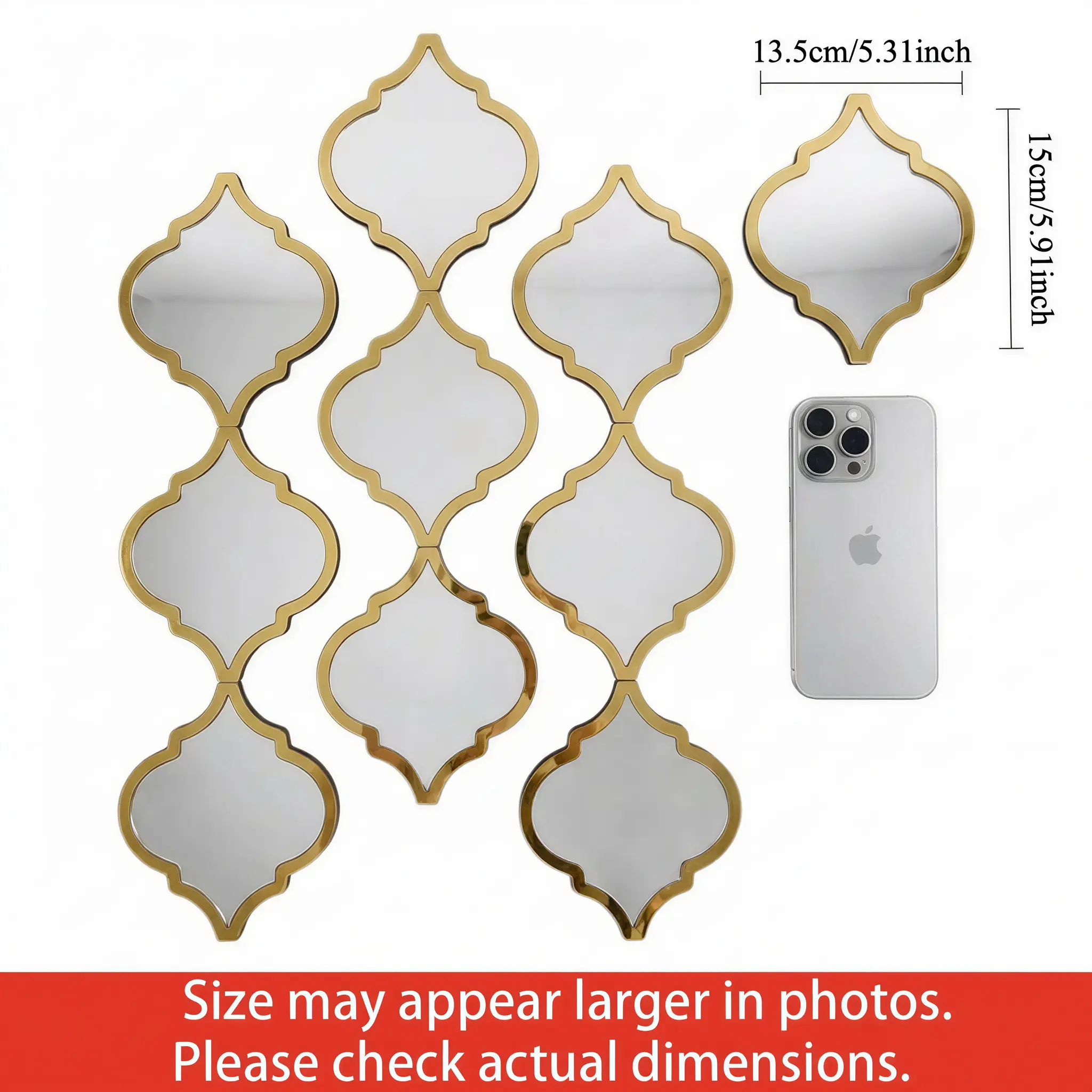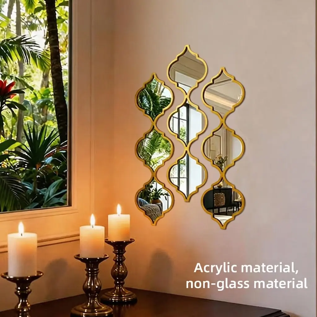 9/12Pcs Moroccan Style Acrylic Wall Mirror Set, Irregular Silver Color Decorative Mirrors, Frame, Bohemian Art Wall Decor, Bathroom/living Room/hallway