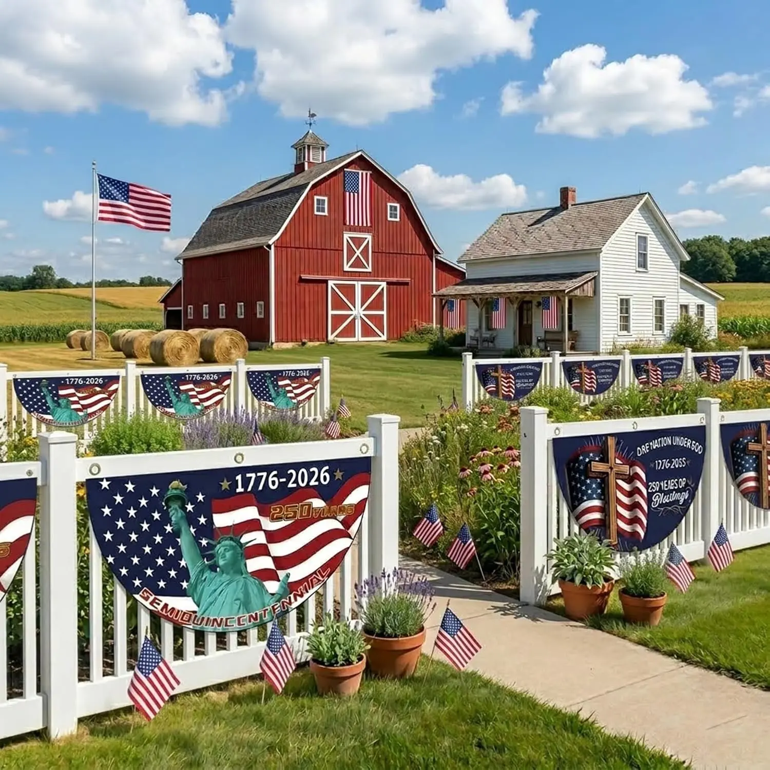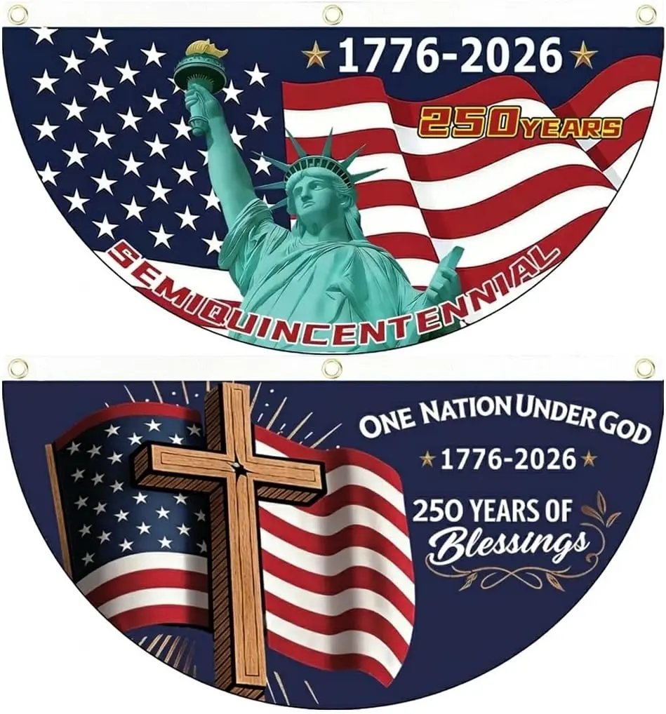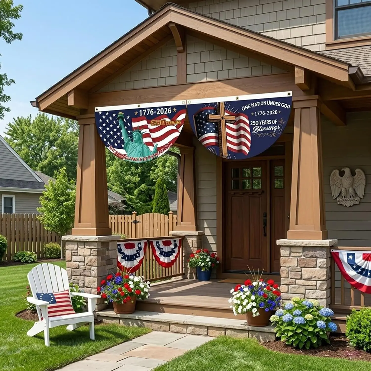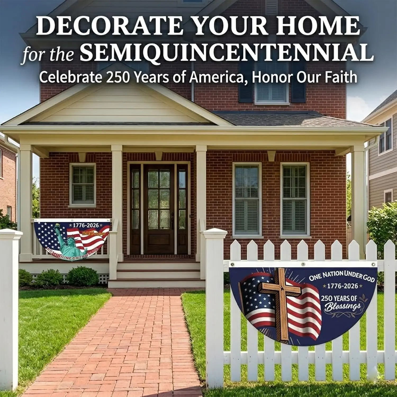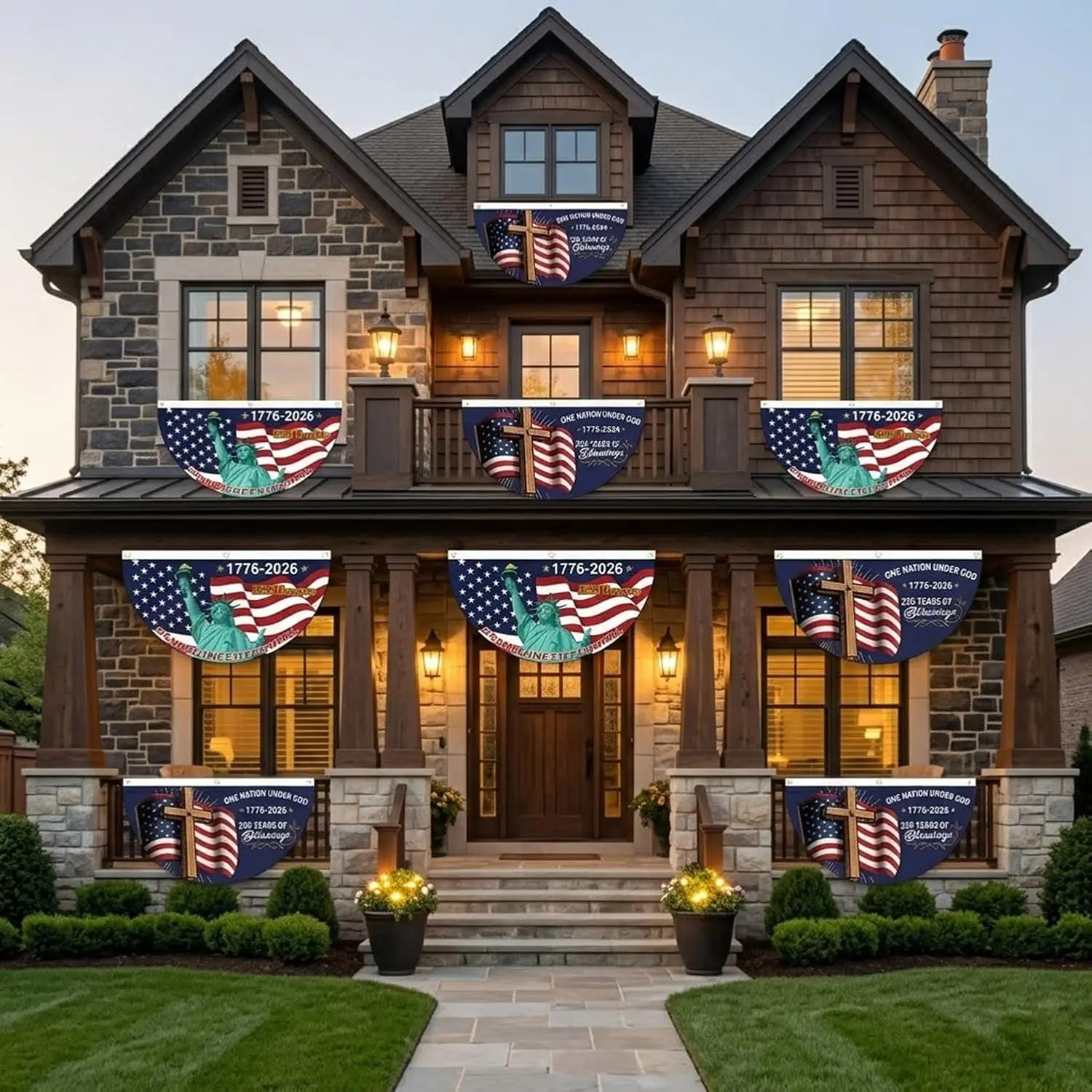 ·[Commemorate the 250th Anniversary]: The iconic Statue of Liberty for a classic patriotic feel, or the "One Nation Under God" cross design for a display of faith and blessings. Celebrate the historic US Semiquincentennial (1776–2026) with these specially designed commemorative bunting flags. Featuring "250 Years" and "Semiquincentennial" branding, they are the perfect way to honor two and a half centuries of American independence and heritage.