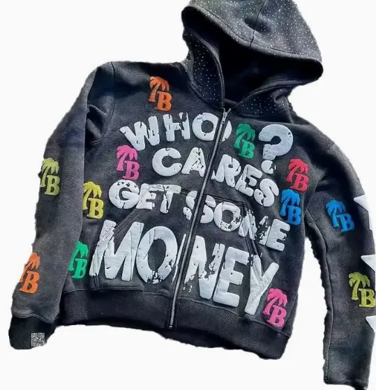 The bold puff lettering, colorful palm tree graphics, and blinged hood deliver straight energy. Made from ultra-soft fleece with a relaxed fit, it’s cozy for all-day wear and perfect for standing out. Whether you’re hanging with the crew or hitting the streets, this hoodie has your back. Grab your statement piece now and flex that unique style!