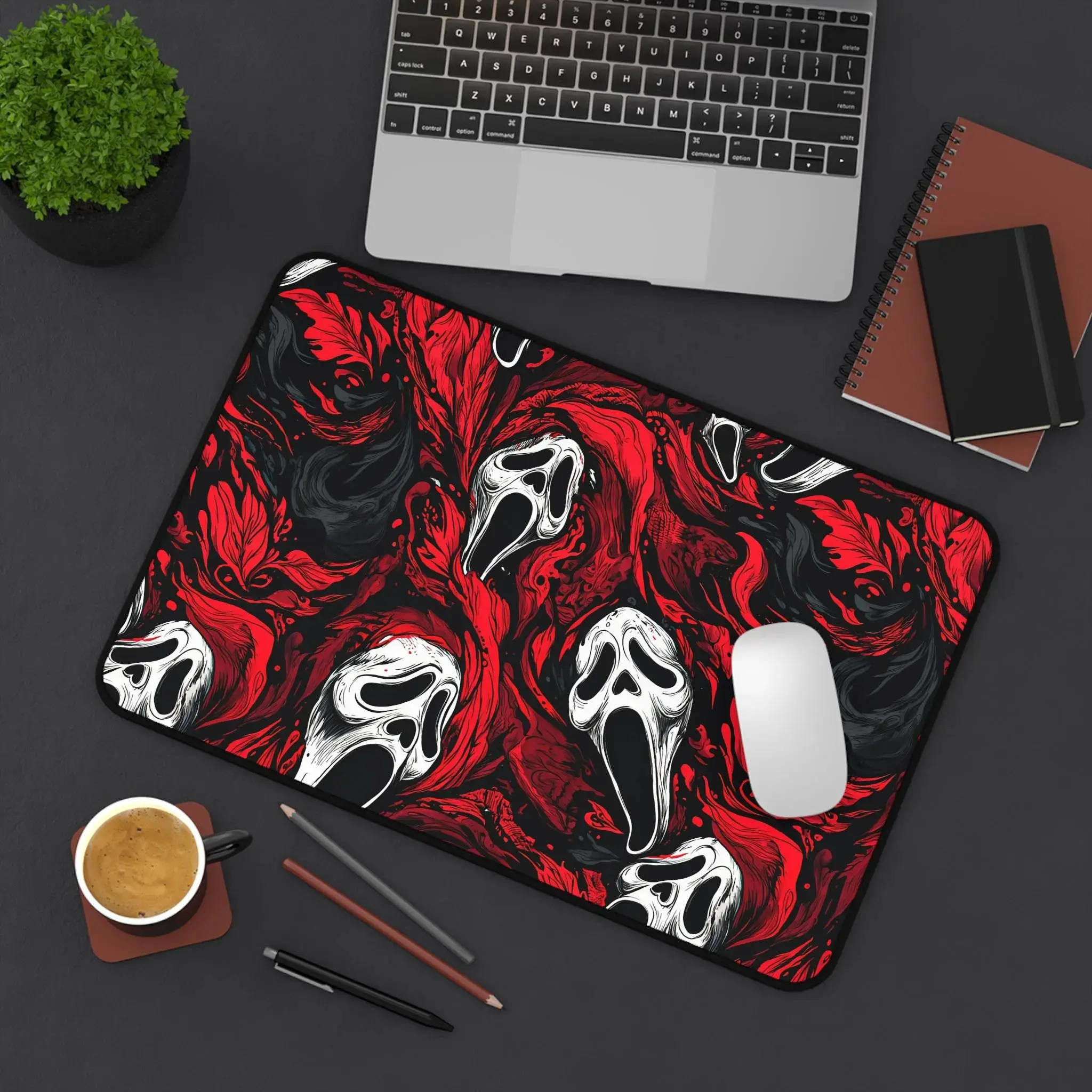 [SALE UP TO 45%] Scream Ghostface Desk Mat_ Horror Movie Mousepad, Red & Black Slasher Gaming Pad, Spooky Halloween Office Decor, Goth Desk Accessory