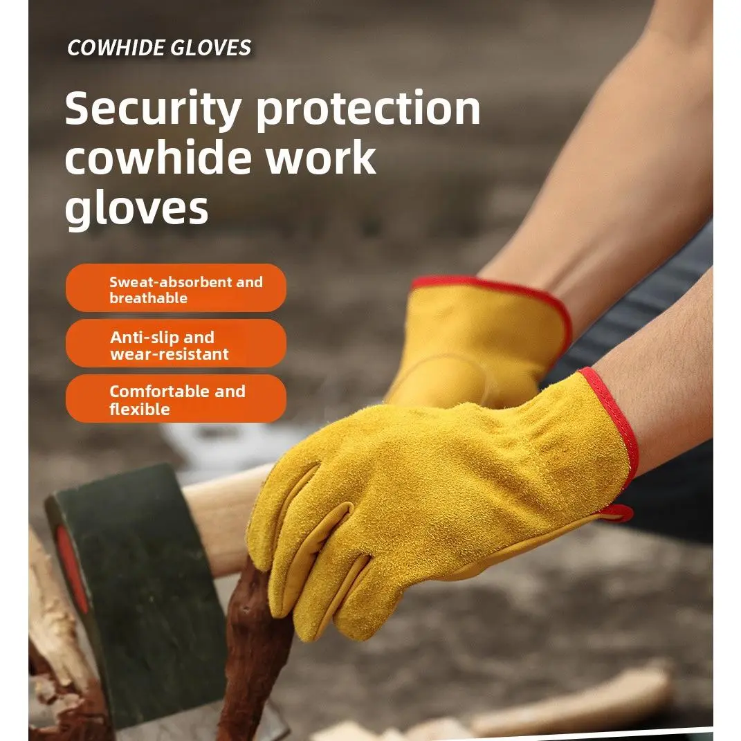 Protect your hands with these heavy-duty cowhide work gloves! Crafted from premium cowhide, they deliver exceptional abrasion resistance and slip-proof grip, ideal for construction, woodworking, gardening, and outdoor tasks. The breathable material wicks away sweat to keep hands cool and dry, while the flexible fit ensures dexterity for handling tools and equipment. Durable and comfortable, these gloves provide reliable protection without sacrificing mobility, making them an essential choice for any demanding work environment.