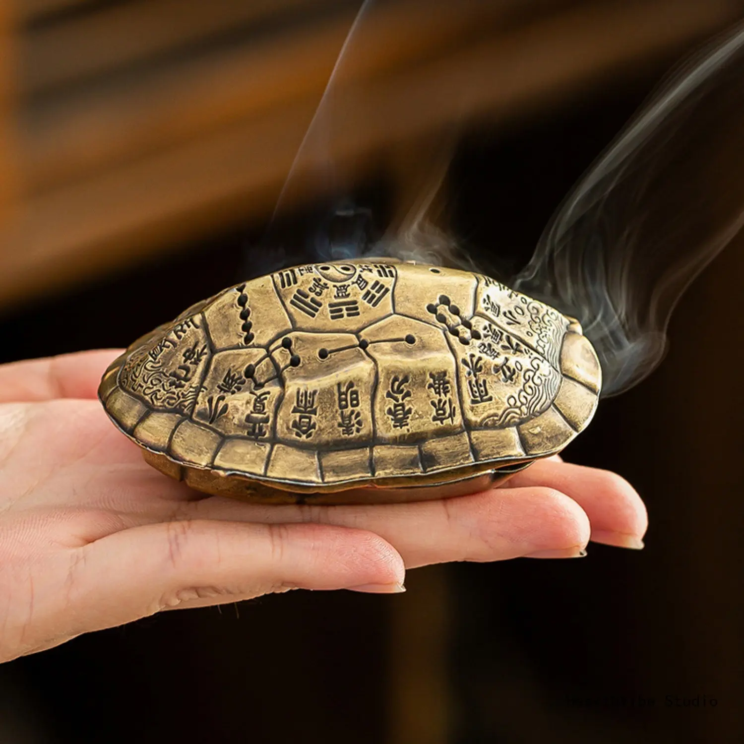 "Lucky Turtle" Incense Burner — Small Auspicious Cloud Coil Incense Holder & Eight Trigram Turtle Shell Censer — Traditional Chinese-Style Small Incense Burner for Home, Teahouse, and Zen-Inspired Decor