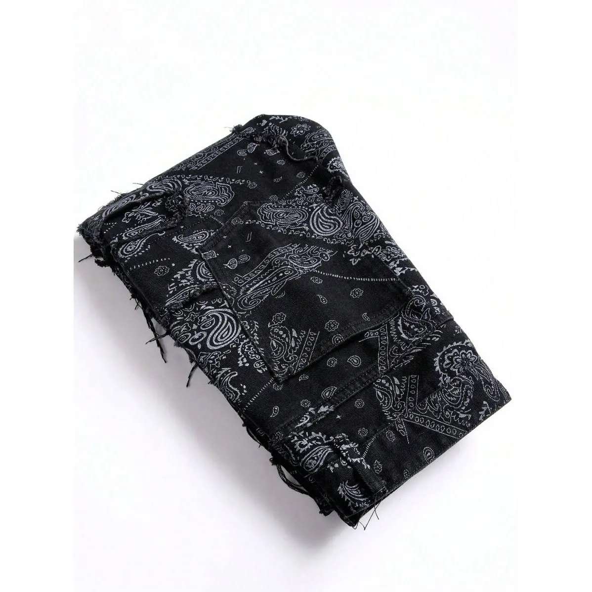 2025 Trend Men's Fashionable Paisley Print Frayed Hem Slim Fit Jeans