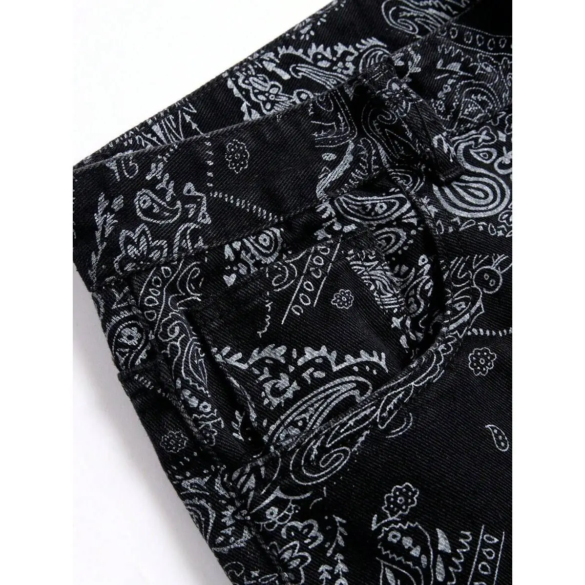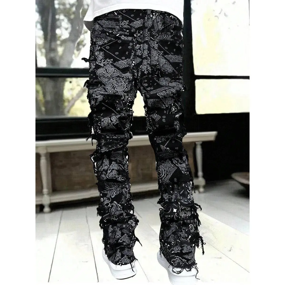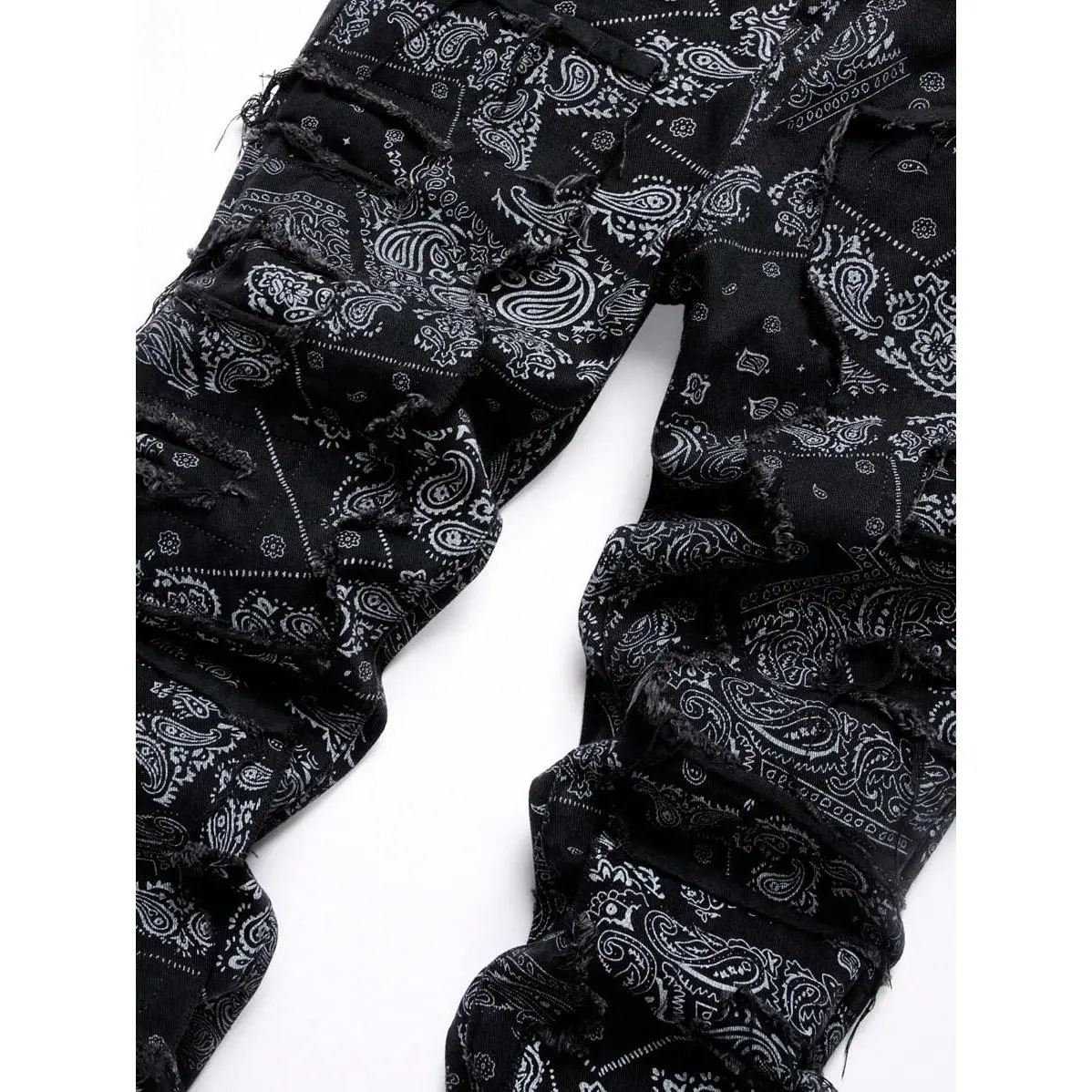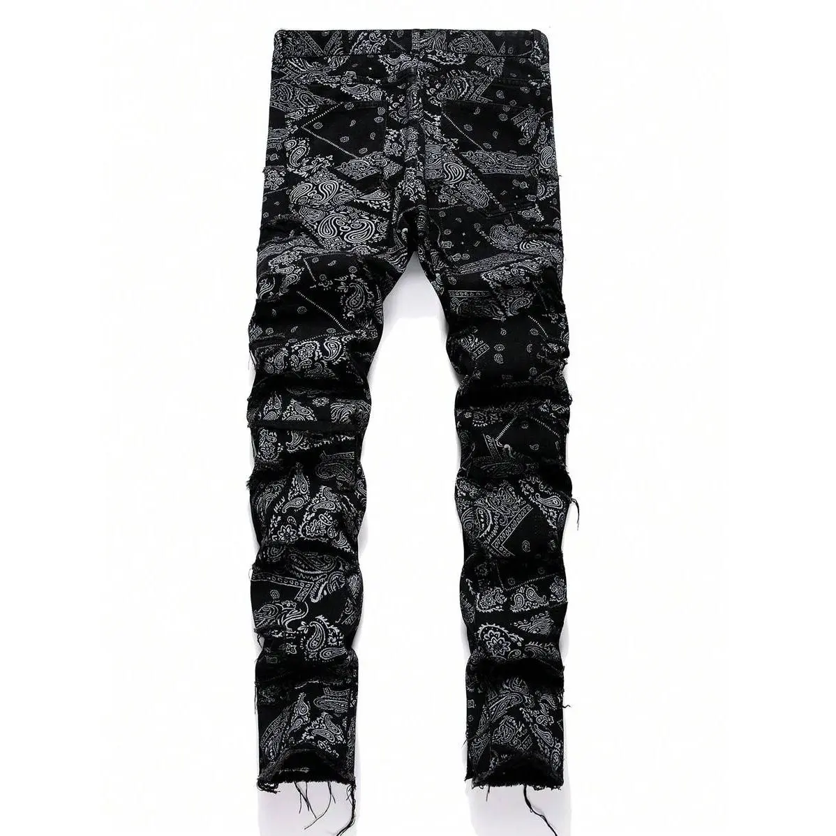 5. 2025 Trend Men's Fashionable Paisley Print Frayed Hem Slim Fit Jeans