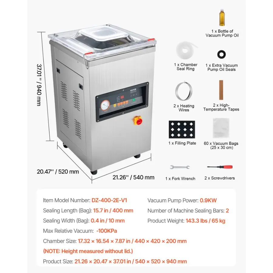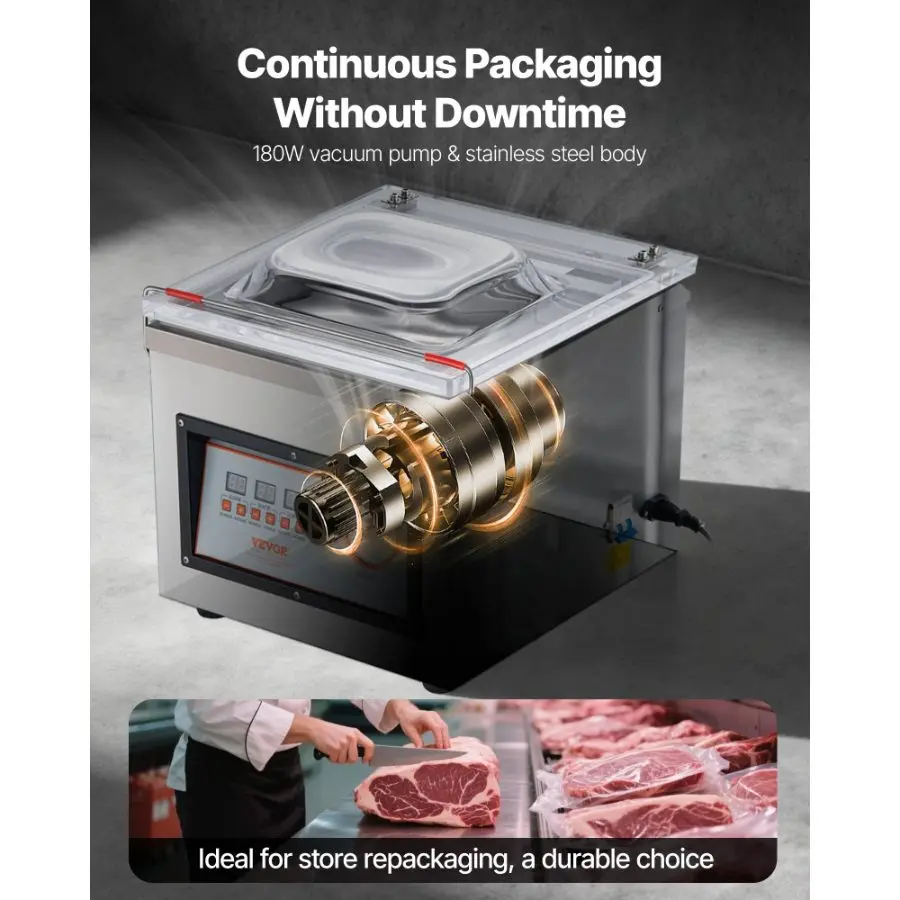 Crafted with 201 stainless steel and a 180W vacuum pump, this chamber sealer delivers stable performance for continuous use. Its tough build ensures long-term reliability.
