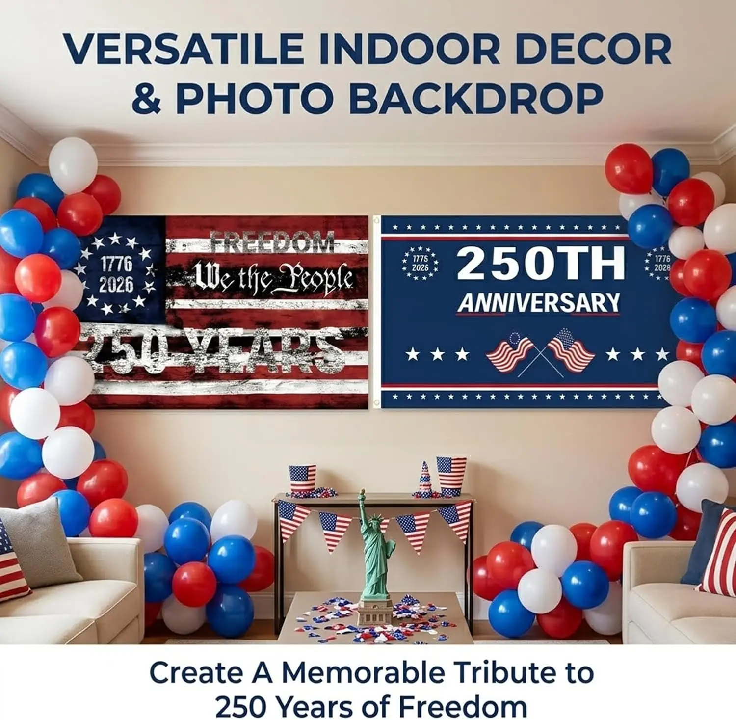 ·[Wide Application]: Easy to hang on front porches, fences, porches, walls, or flagpoles, offering a flexible 250 anniversary USA flag display for indoor or outdoor.