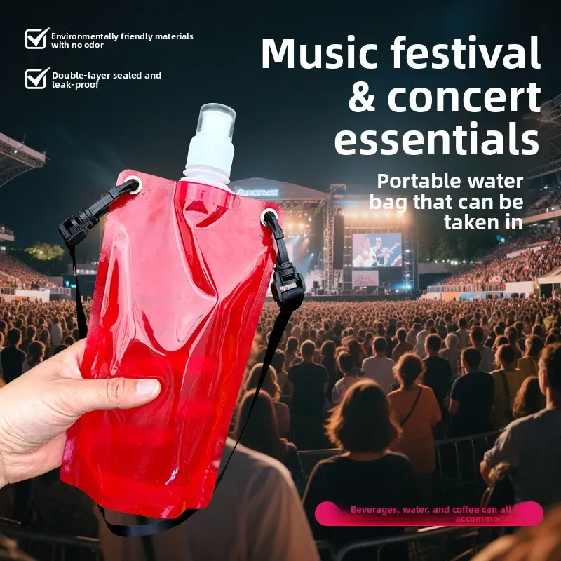 Folding Water Bag Bar Music Festival Plastic Soft Water Bag Lanyard Convenient Water Bag Mountaineering Cycling Water Bag