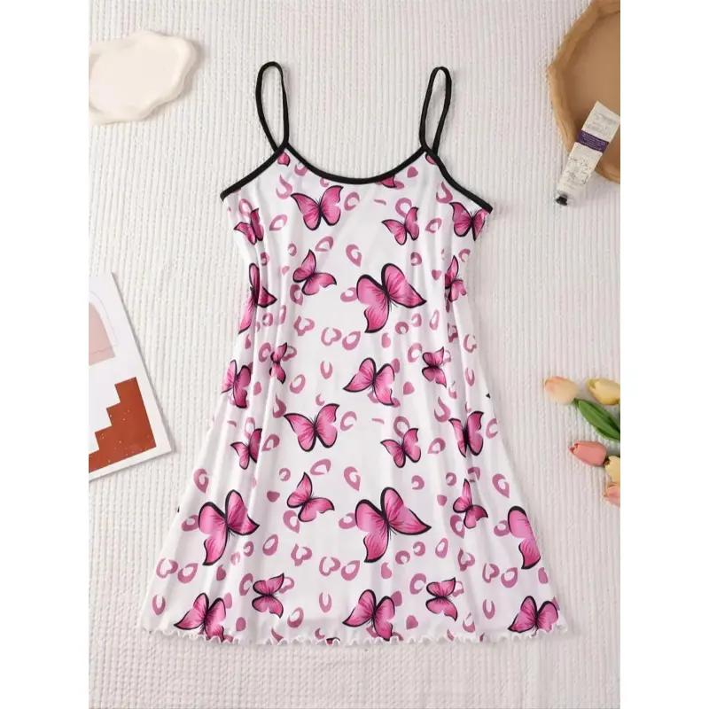 Women's All Over Print Sleeveless Cami Nightdress, Casual Soft Comfortable Spaghetti Strap Nightgown for All Seasons, Lady's Sleepwear for Indoor Wear, Breathable Sleep Dress233