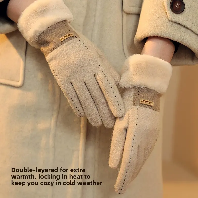 Embrace the winter chill in cozy style with these plush fleece-lined winter gloves! Crafted with a thick, double-layer design, they deliver exceptional warmth retention to shield your hands from freezing temperatures. The soft, fuzzy fleece lining offers luxurious comfort against your skin, while the durable outer shell blocks wind and snow. A classic, elegant look complements any winter outfit, making them perfect for commuting, shopping, or outdoor activities. With a flexible fit and smooth touch, they allow easy use of screens and full dexterity. Stay warm, stylish, and protected all season long with these must-have winter essentials.