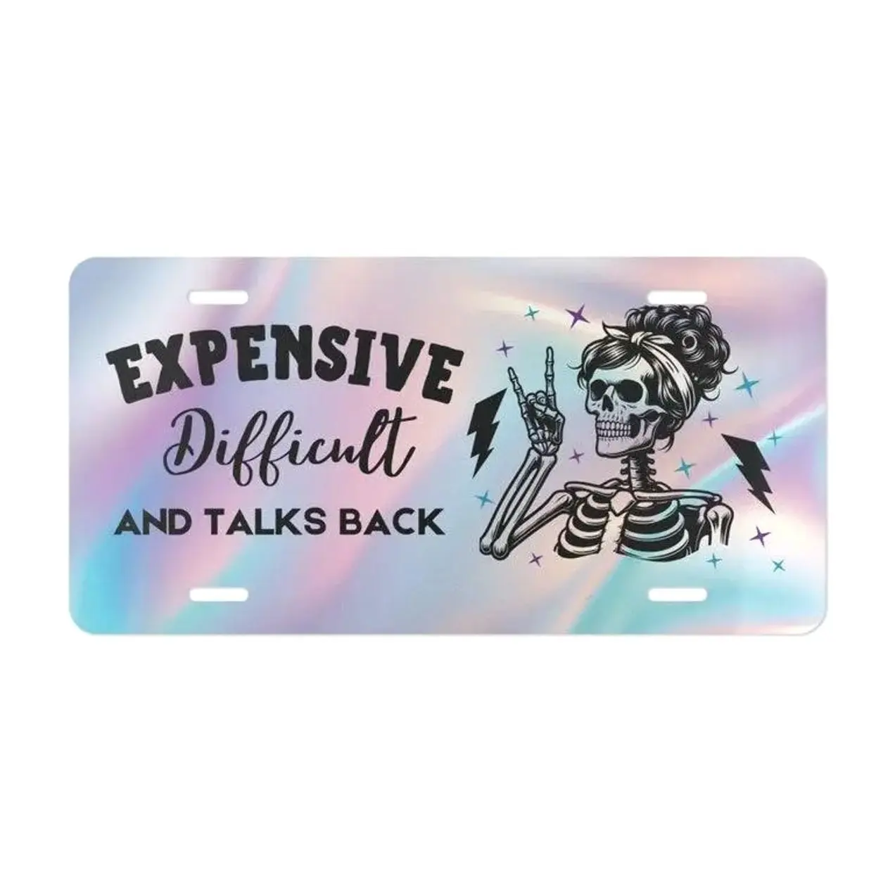 Expensive Difficult and Talks Back License Plate, Car Accessories, Vanity Plate - Lightweight Aluminum, Pre-Drilled holes, Easy Installation