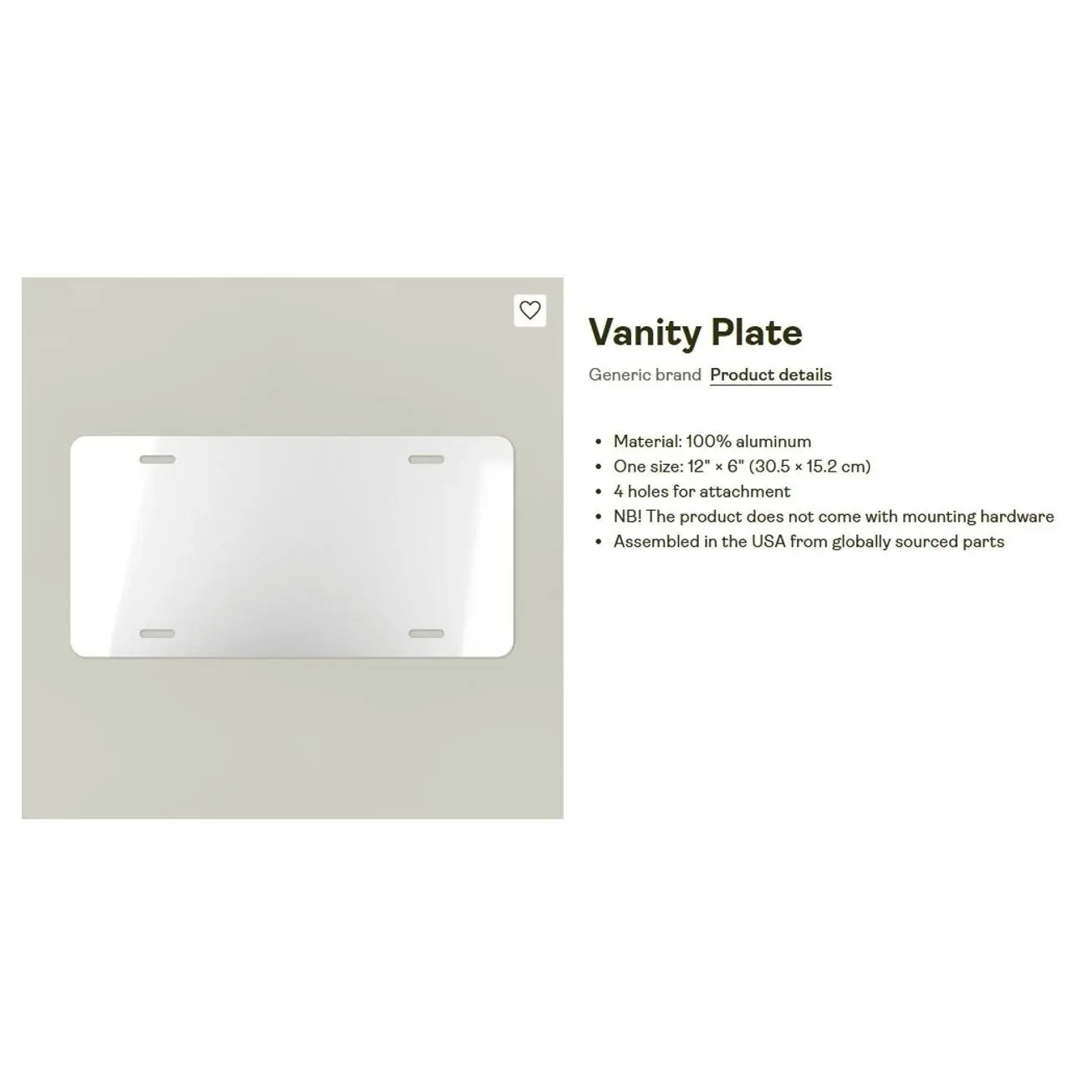 Help drivers express their personality with this custom vanity plate. Each plate is 100% made with robust aluminum material and comes with pre-drilled holes for hassle-free installation. Measuring in at 12" x 6", it is the perfect size to decorate any vehicle or wall as a stylish statement piece.