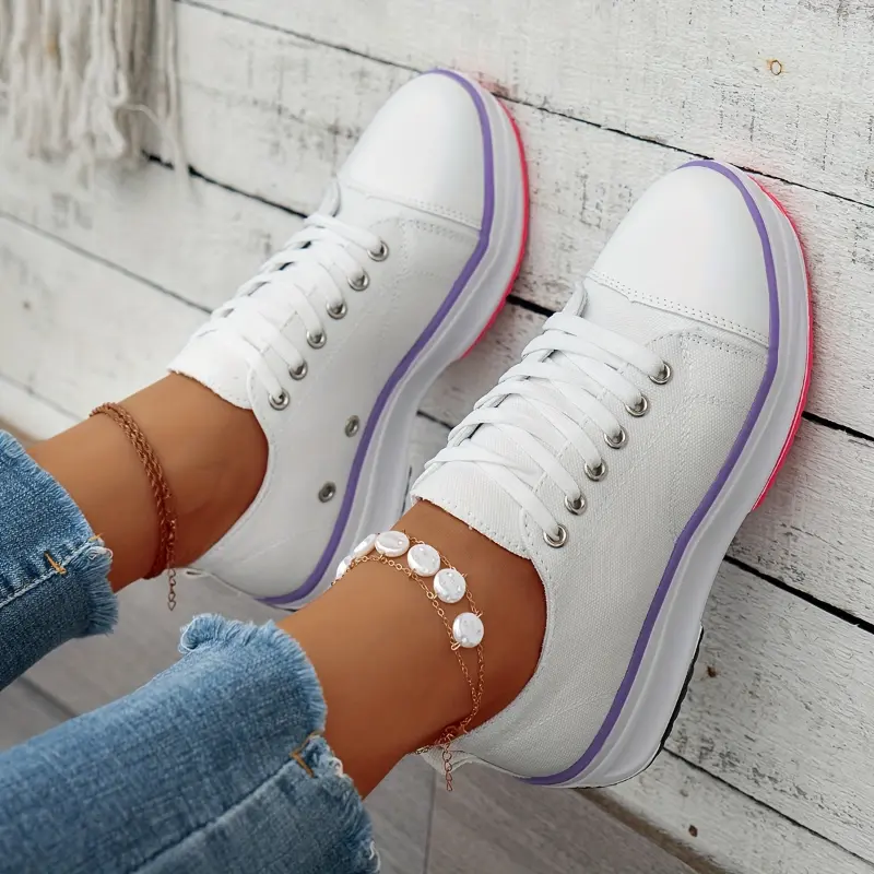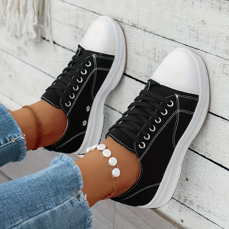 Short Stout Sneaker Women: Non-Slip, Lace-up, Casual Running Shoes, Platform Footwear White for Girls Closure